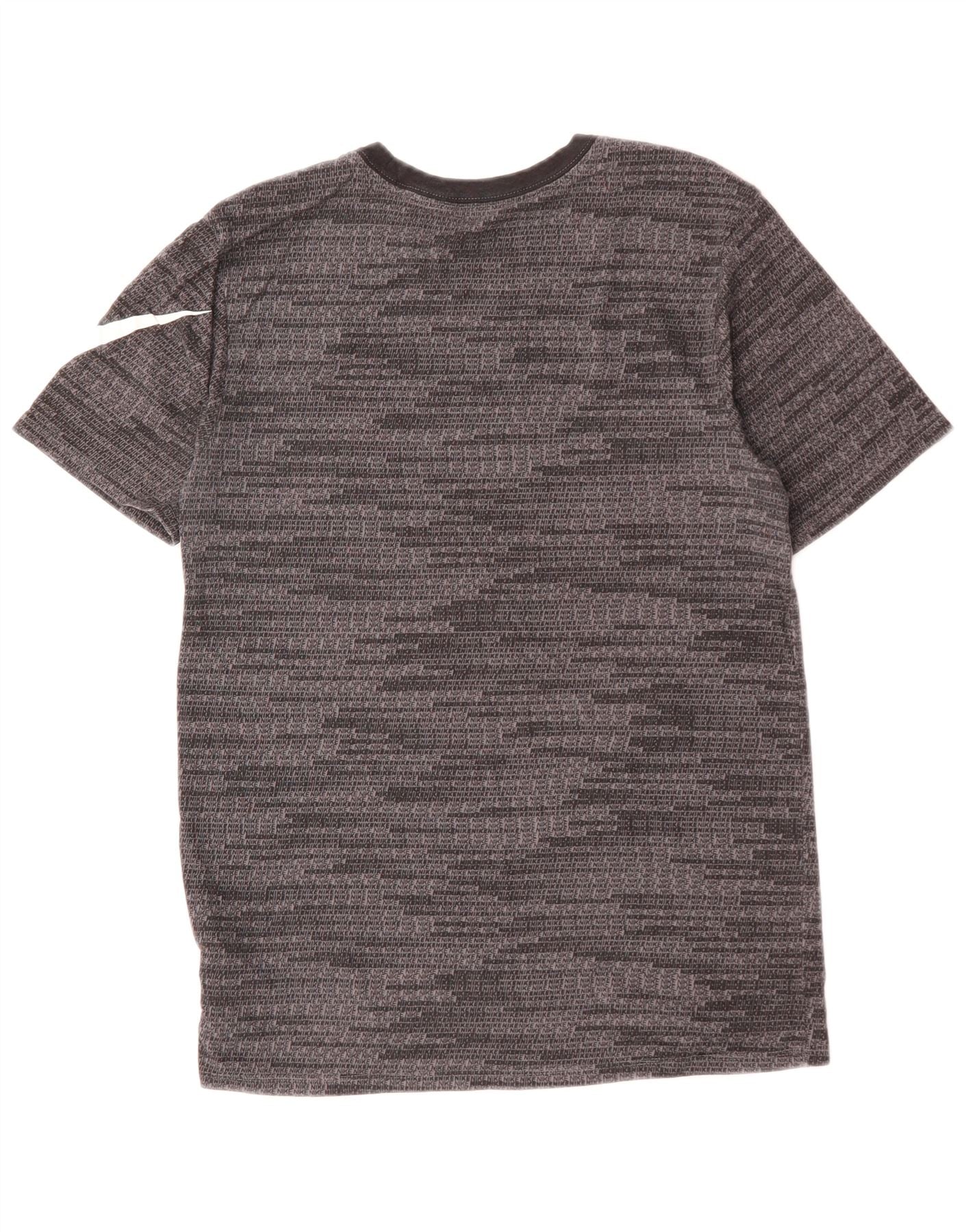 - Descrição da IA: Esta camiseta gráfica masculina da Nike é confeccionada em tecido de malha leve e confortável. Possui gola redonda clássica e mangas curtas. O tecido preto tem um padrão sutil manchado por toda parte. Um logotipo swoosh branco proeminente da Nike adorna a manga esquerda. Seu ajuste regular garante respirabilidade e facilidade de movimento, perfeito para esportes ou uso casual.