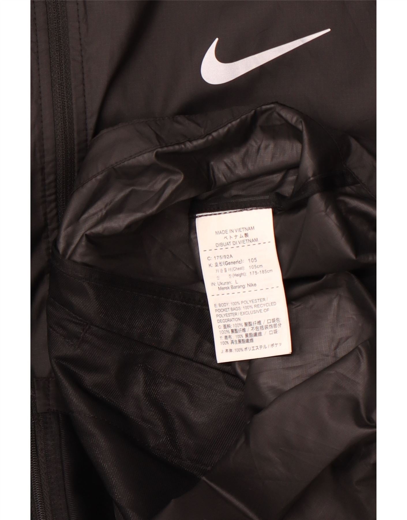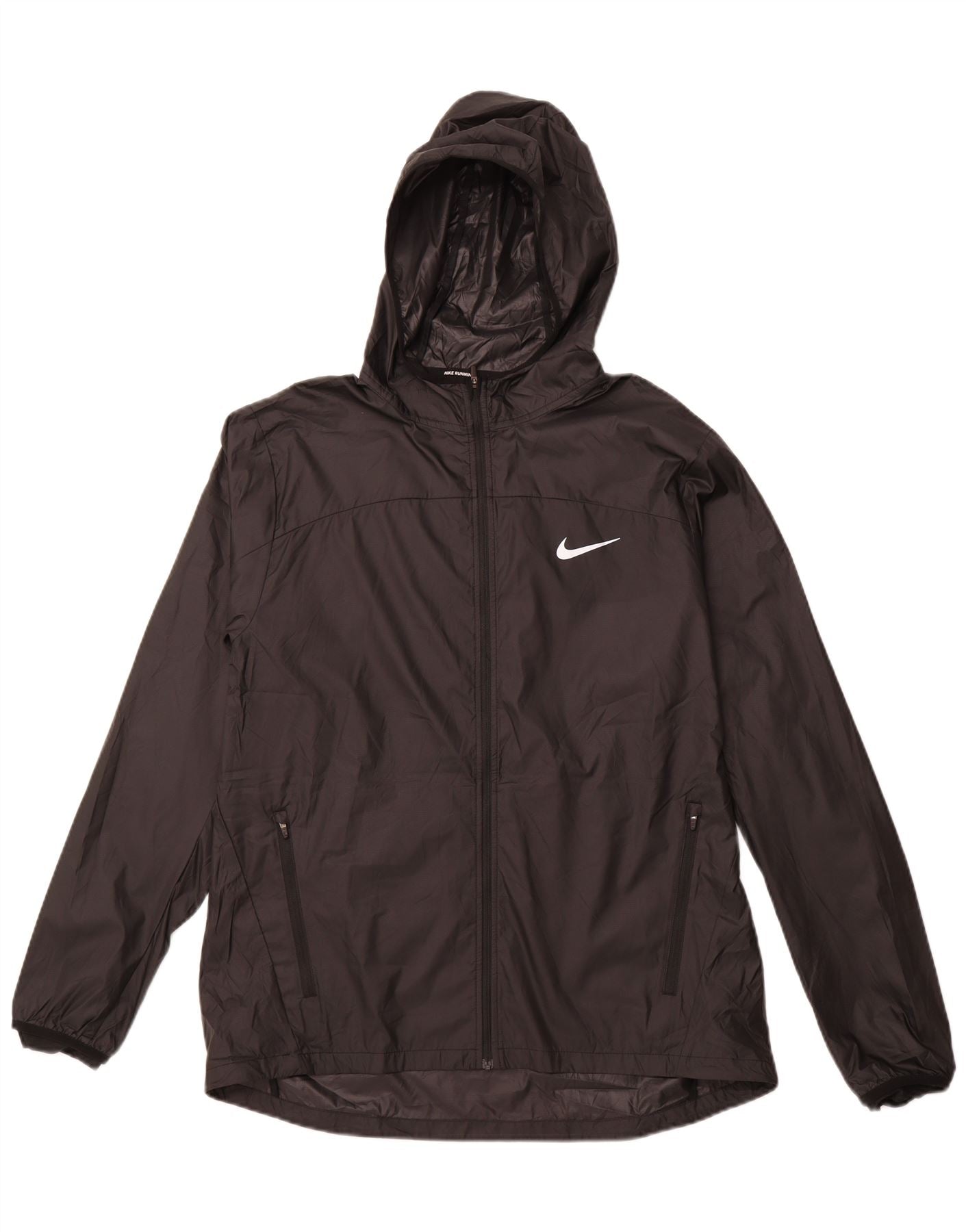 Jaqueta de chuva masculina NIKE com capuz UK 40 grande poliéster preto