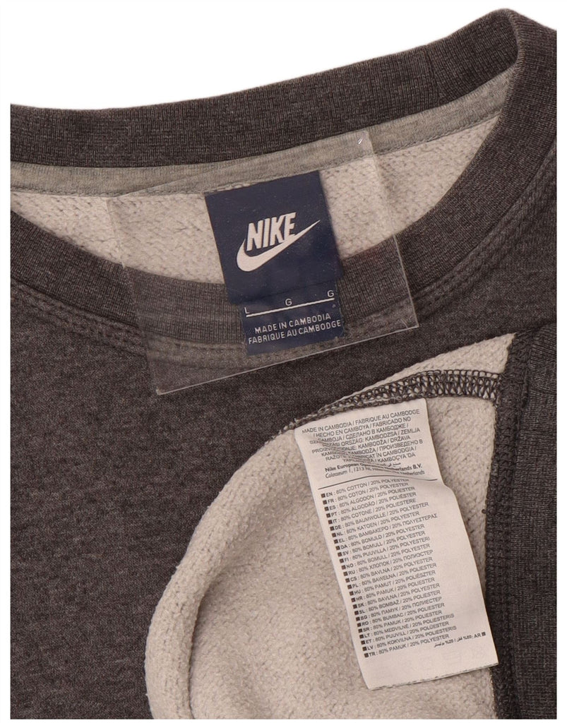 - Descrição da IA: Este suéter masculino da Nike é confeccionado em uma confortável mistura de algodão cinza. O tecido misto oferece uma sensação suave, realçada por um forro de lã aconchegante. Possui gola redonda clássica e mangas compridas, garantindo calor e cobertura. O corte regular proporciona facilidade de movimento, enquanto o estilo pulôver mantém a simplicidade. Um grafismo proeminente e um logótipo acrescentam um toque exclusivo da Nike.