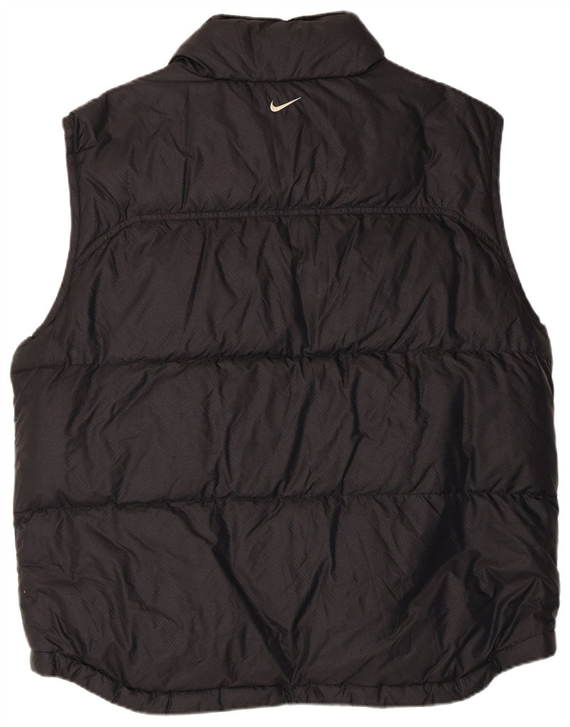 - AI Description: This Nike womens padded gilet offers lightweight warmth in a sleek black woven fabric. Its padded construction provides comfort without bulk. The collared neckline and full zip closure ensure a secure fit. A sleeveless design allows for unrestricted movement. The regular fit and subtle logo accent complete this versatile sports piece.