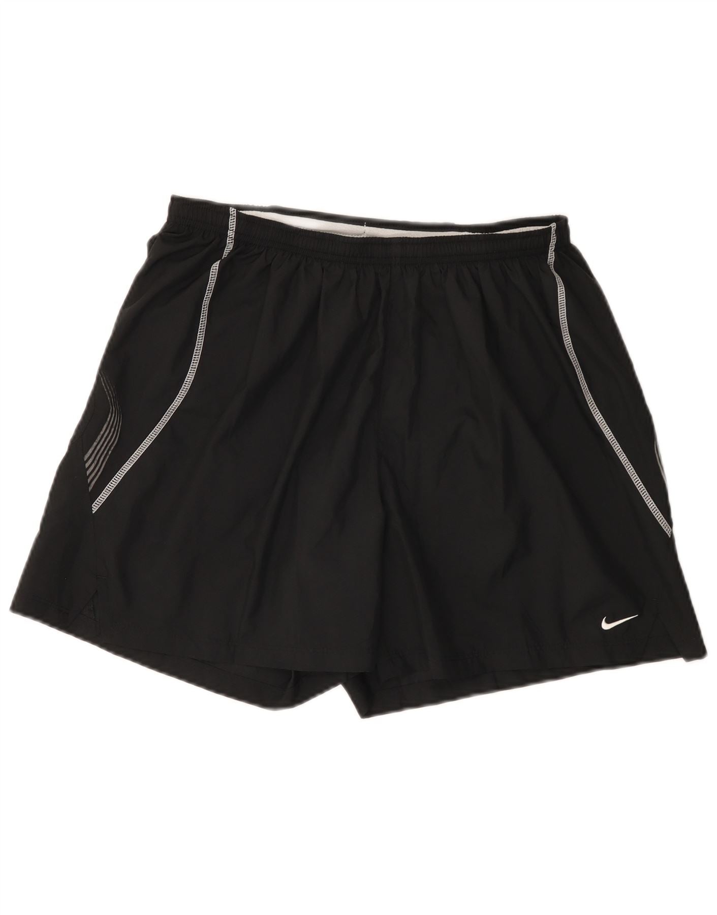 - Descrição da IA: Este short de corrida masculino da Nike é confeccionado em tecido leve preto mesclado com tecnologia Dri-FIT. Eles apresentam um elástico na cintura para um ajuste seguro e confortável. O corte atlético solto garante liberdade de movimento. Detalhes sutis de debrum branco adornam as laterais. Um pequeno logotipo da Nike está presente. Bolsos com zíper oferecem armazenamento prático. Estes shorts são ideais para atividades ativas.
