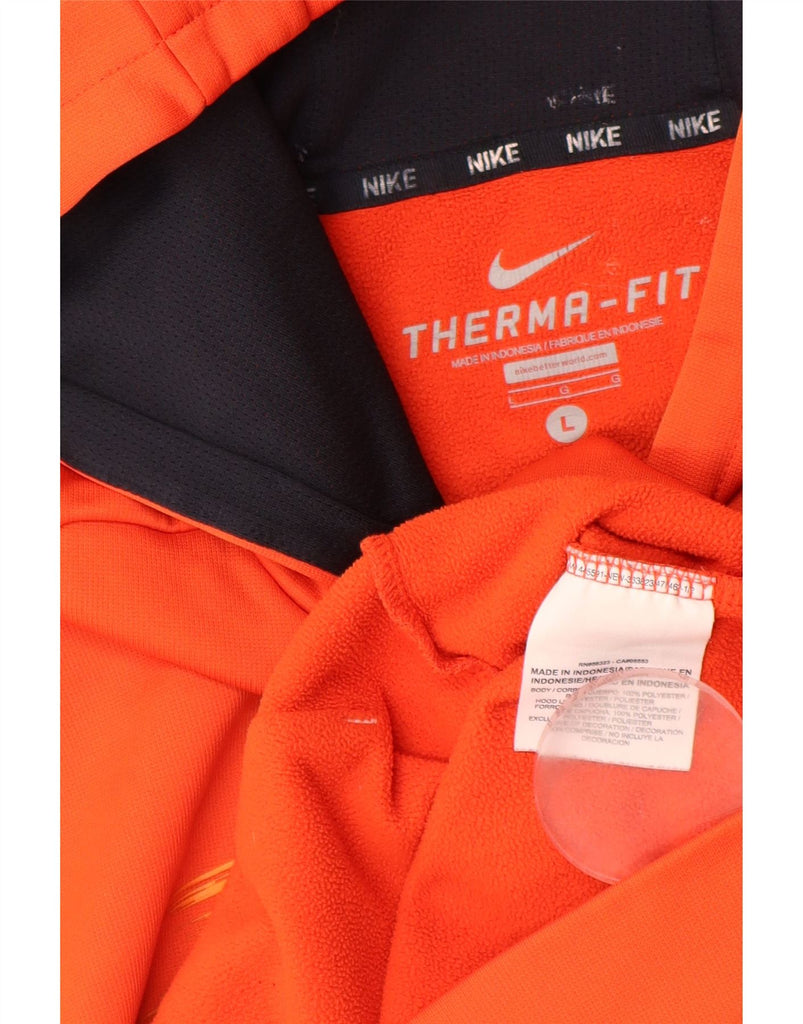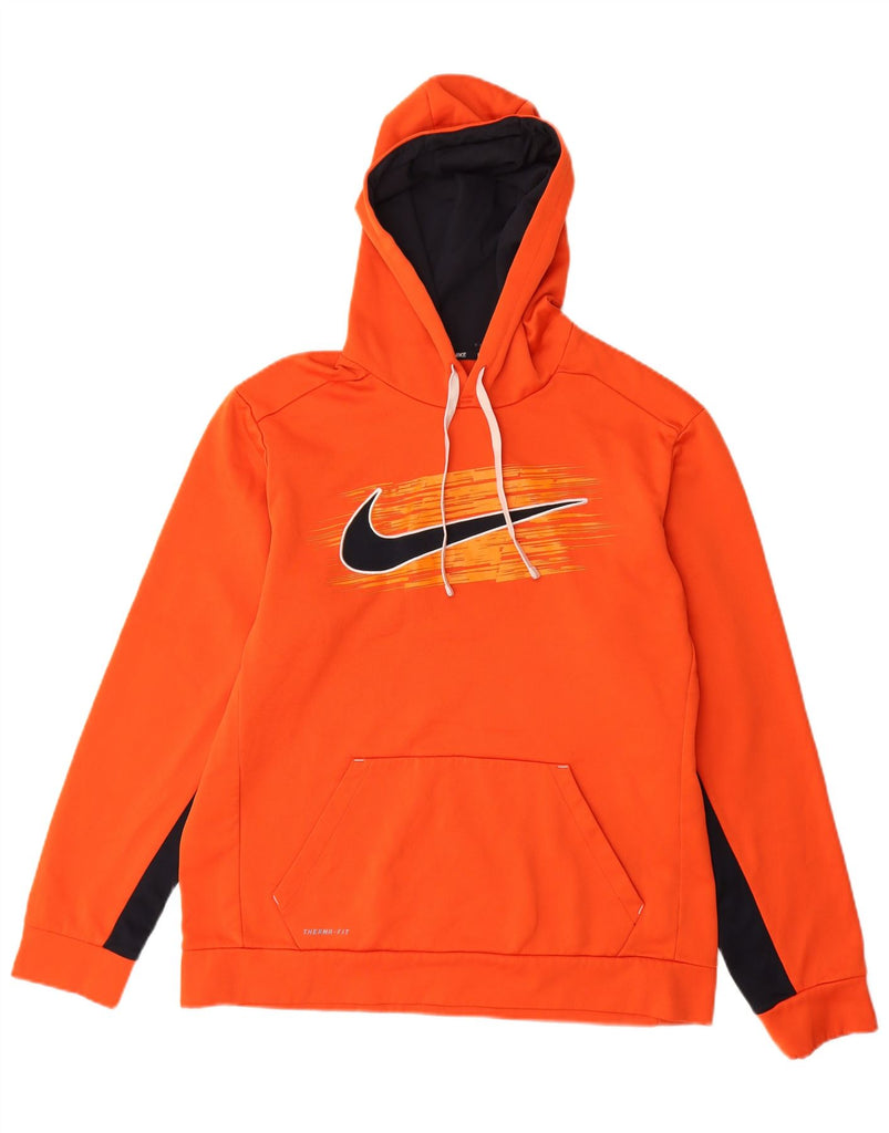 Suéter com capuz gráfico masculino NIKE Therma-Fit grande bloco colorido laranja