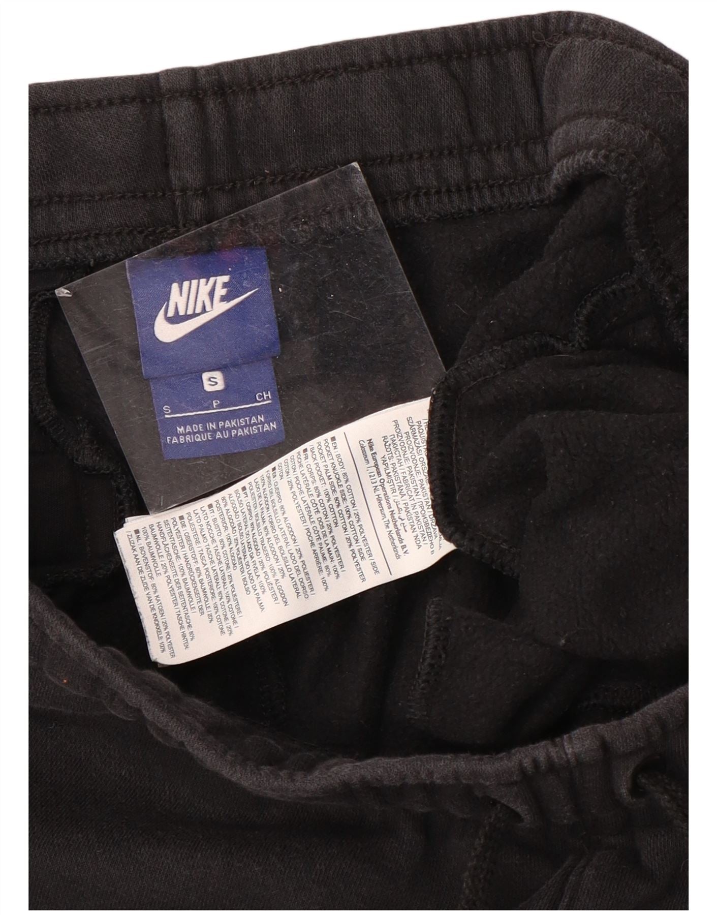 - Descrição da IA: As calças esportivas masculinas da Nike são feitas de um confortável tecido preto misturado, com 80% de algodão e 20% de poliéster para uma textura de lã macia. Eles oferecem um ajuste regular com cintura elástica e fecho de cordão ajustável para maior conforto. Bolsos laterais proporcionam armazenamento prático. Um detalhe sutil do logotipo da Nike está presente na perna, adicionando um toque atlético exclusivo.
