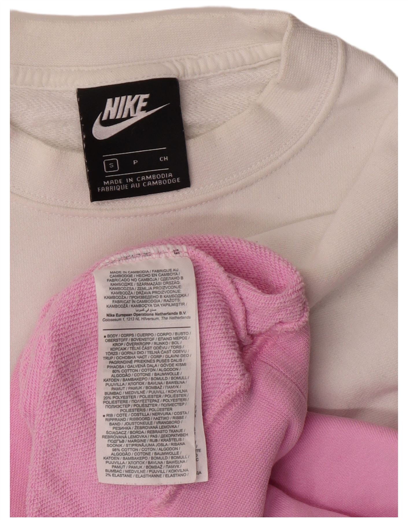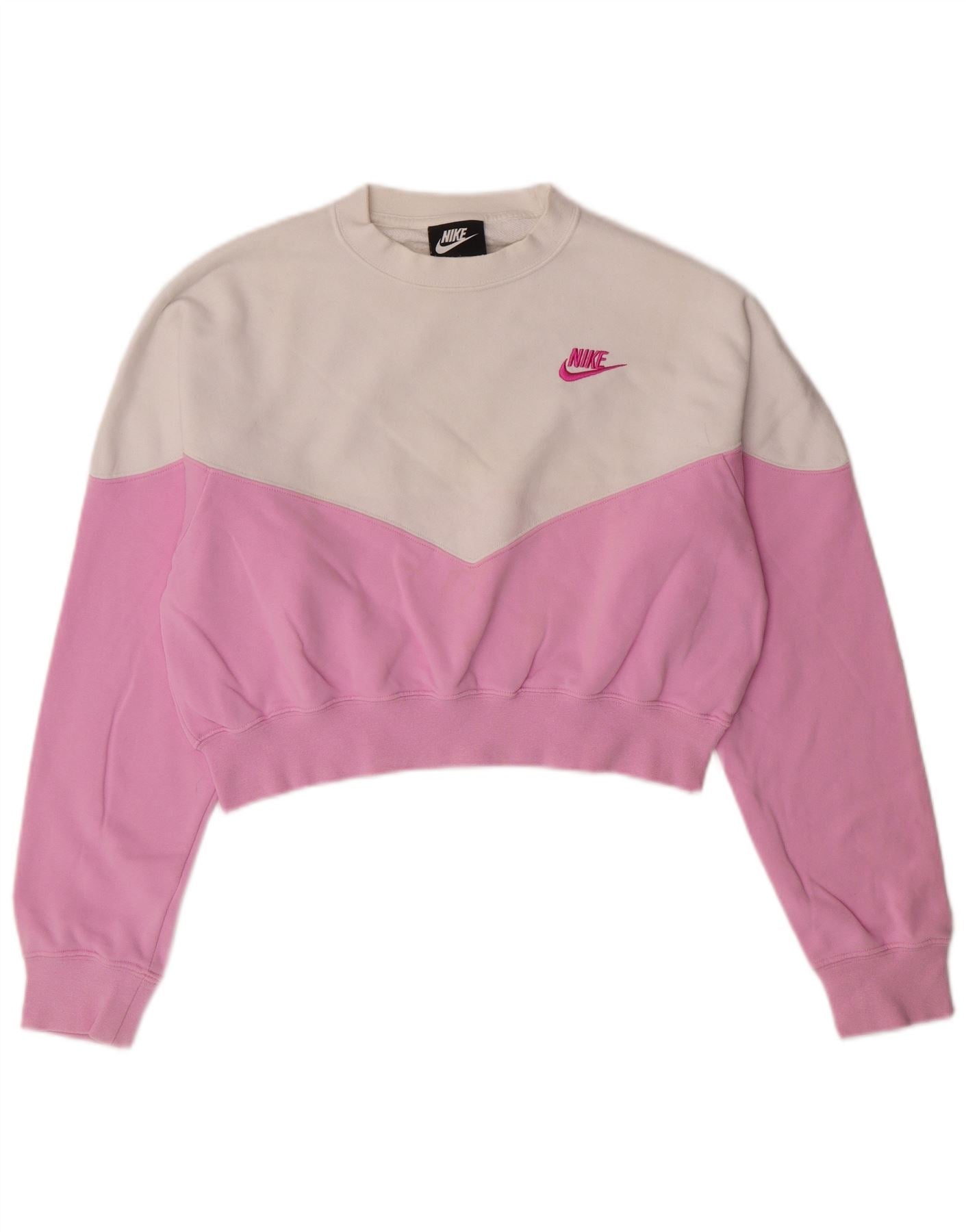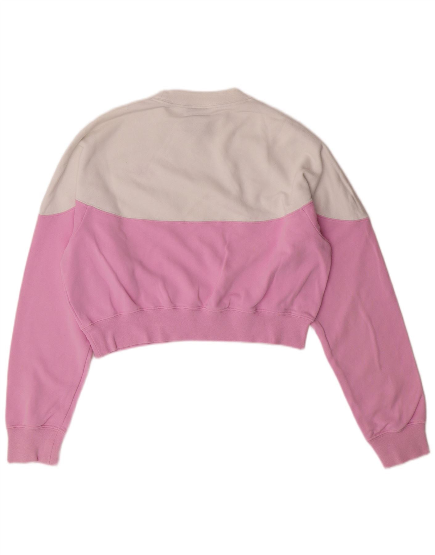 NIKE Womens Crop Sweatshirt Jumper UK 10 Pequeno Rosa Colourblock Algodão