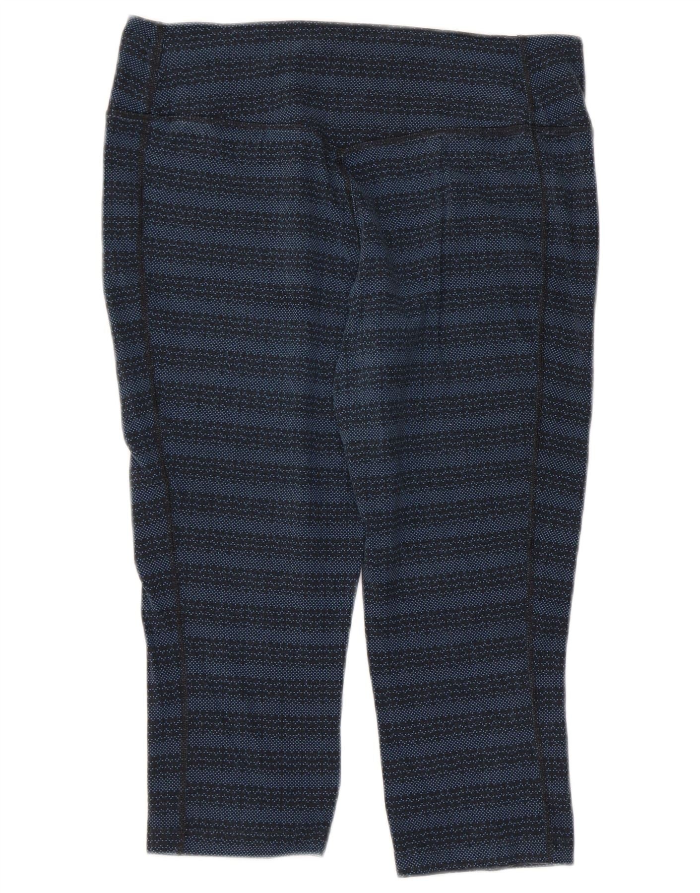 Calça legging feminina Nike Dri Fit Capri UK 14 grande listrada azul marinho de algodão