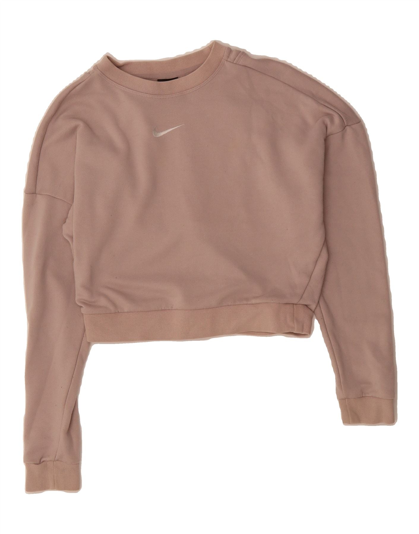 NIKE Womens Dri Fit Crop Oversized Moletom Jumper Reino Unido 10 Pequeno Rosa