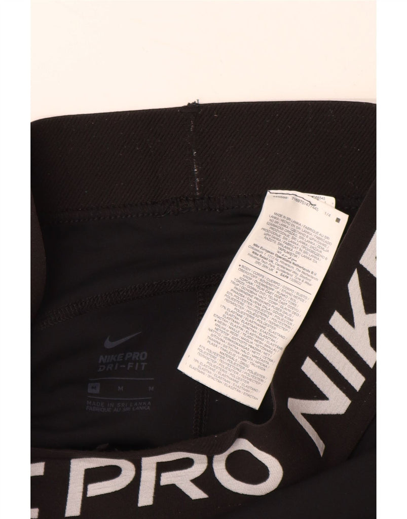 NIKE Womens Dri Fit Graphic Capri Leggings UK 12 Medium Black Polyester