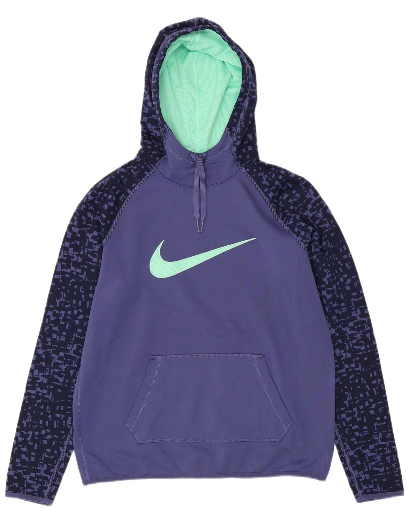 NIKE Womens Dri Fit Graphic Hoodie Jumper UK 14 Médio Roxo Geométrico