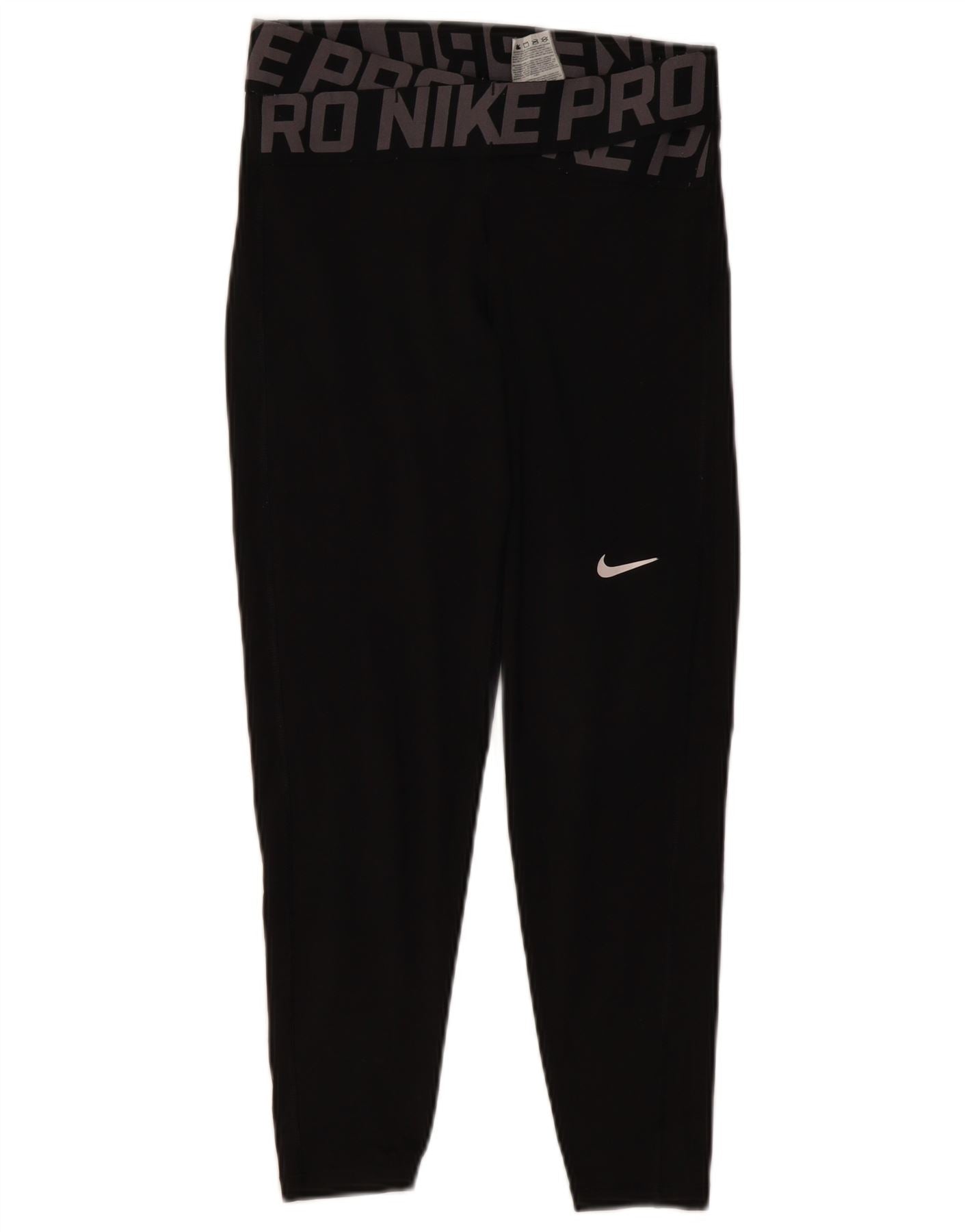 Leggings femininas Nike Dri Fit Graphic UK 10 pequenas pretas de poliéster