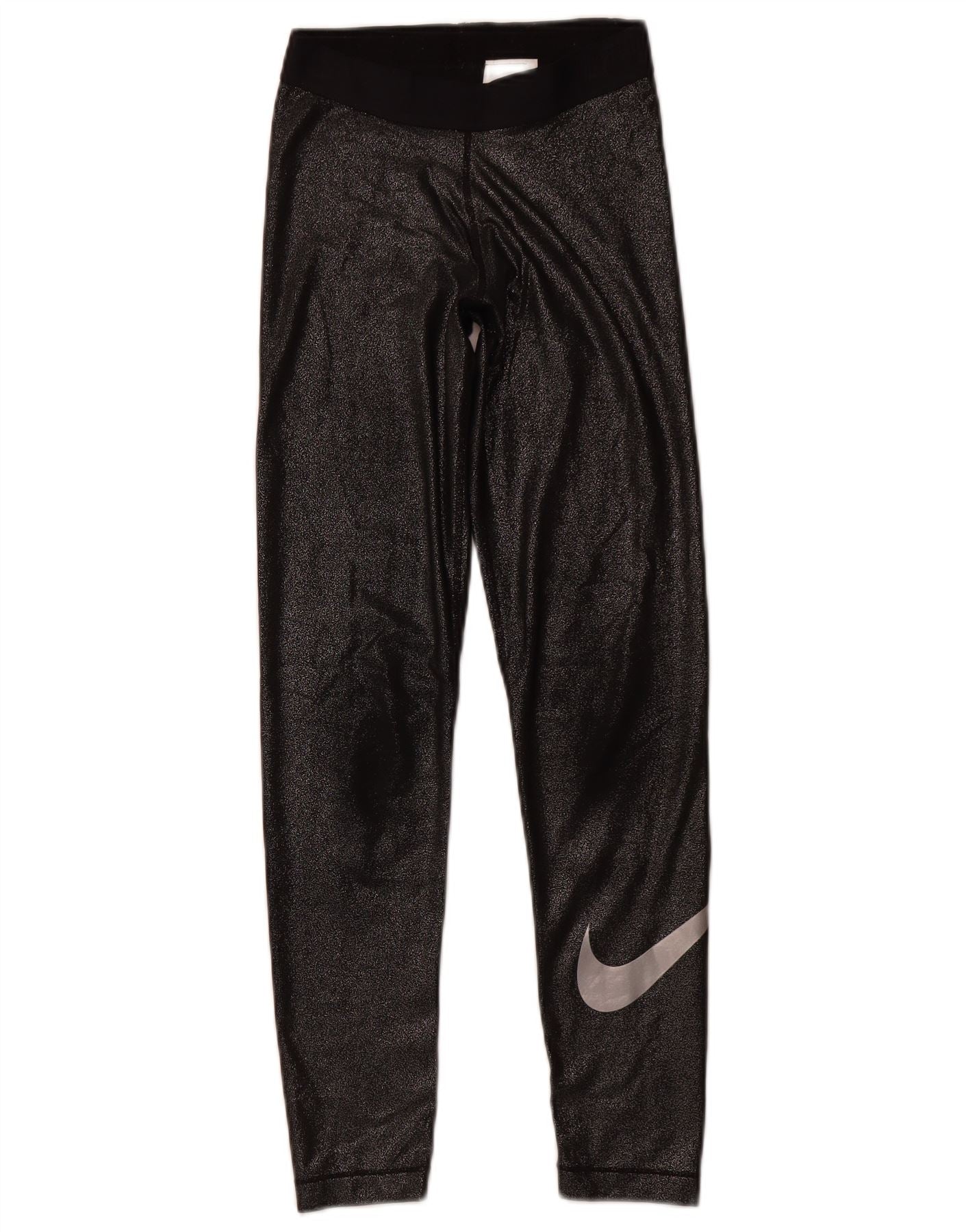 Leggings femininas Nike Dri Fit Graphic UK 8 pequenas pretas de poliéster
