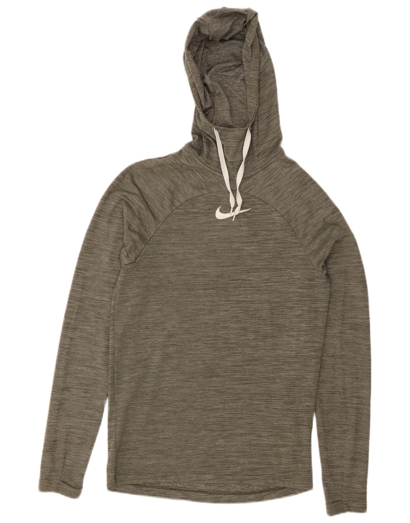 NIKE Womens Dri Fit Hoodie Jumper UK 6 XS Khaki Flecked Poliéster