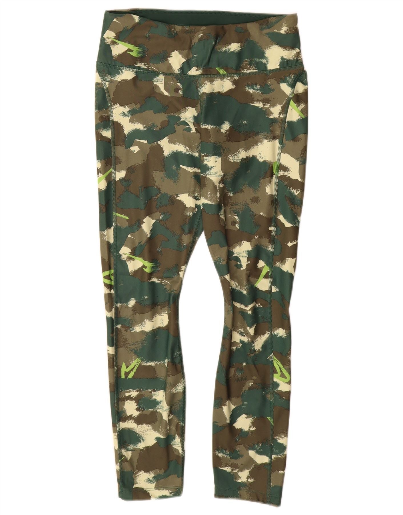 Leggings Nike Dri Fit Femininas UK 12 Médio Verde Camuflagem Poliéster