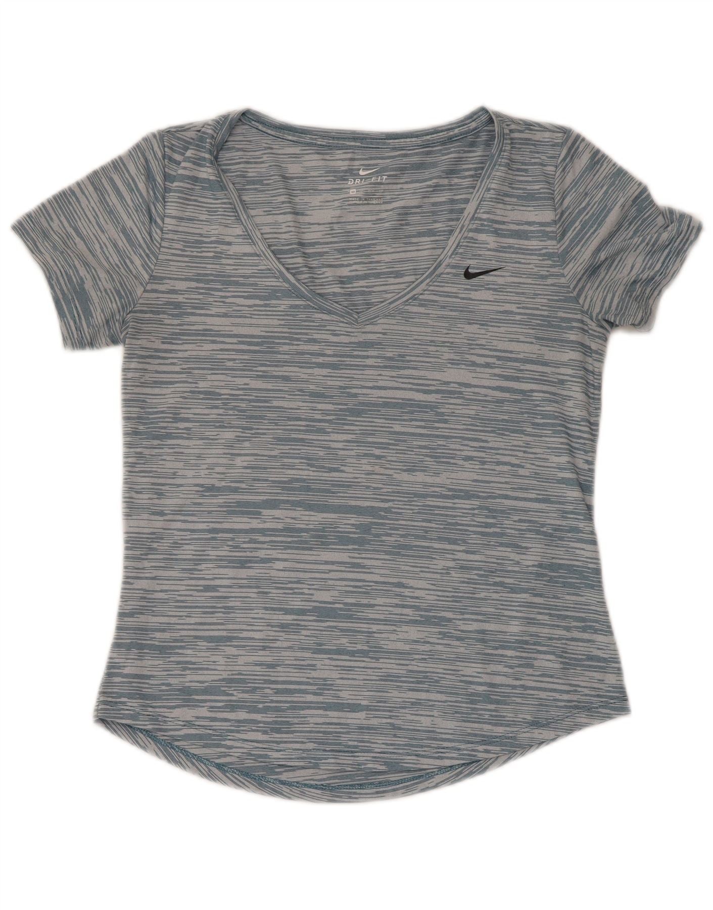 Camiseta feminina Nike Dri Fit Loose Fit Top UK 6 XS Azul Listrado Poliéster