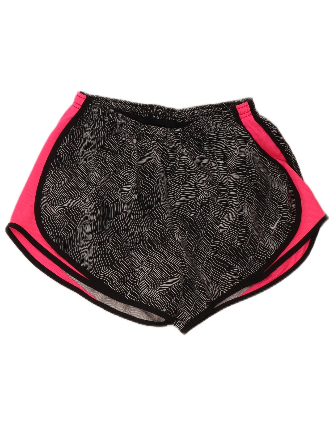NIKE Womens Dri Fit Sport Shorts UK 16 Grande Preto Colourblock Poliéster