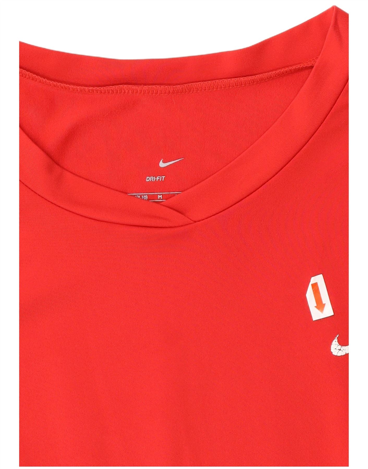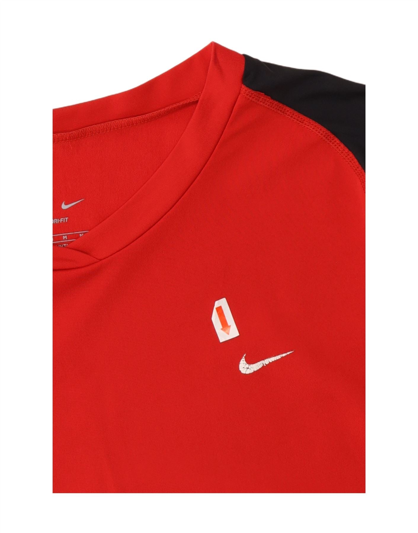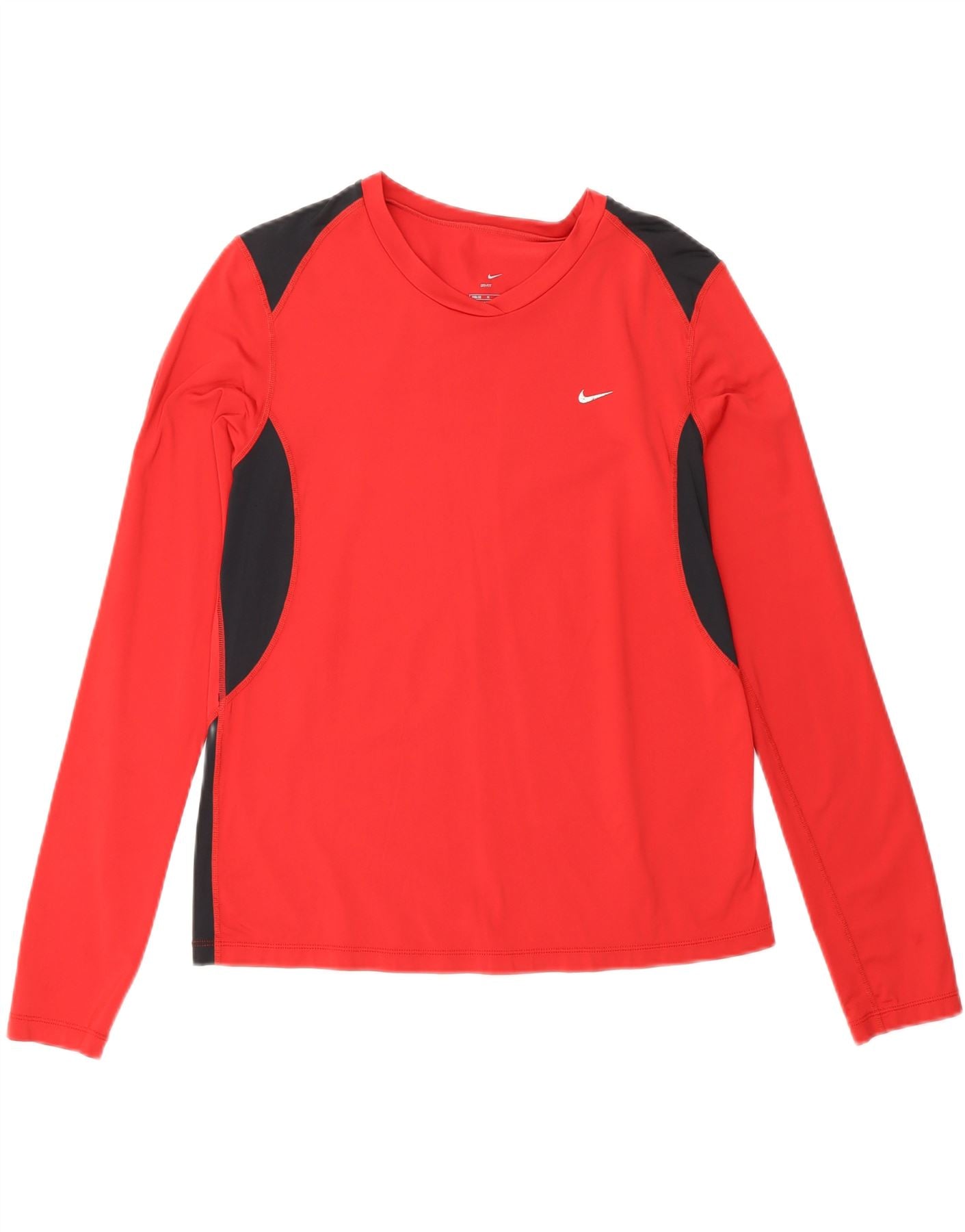 NIKE Womens Dri Fit Top Manga Longa Reino Unido 8/10 Médio Vermelho Colourblock
