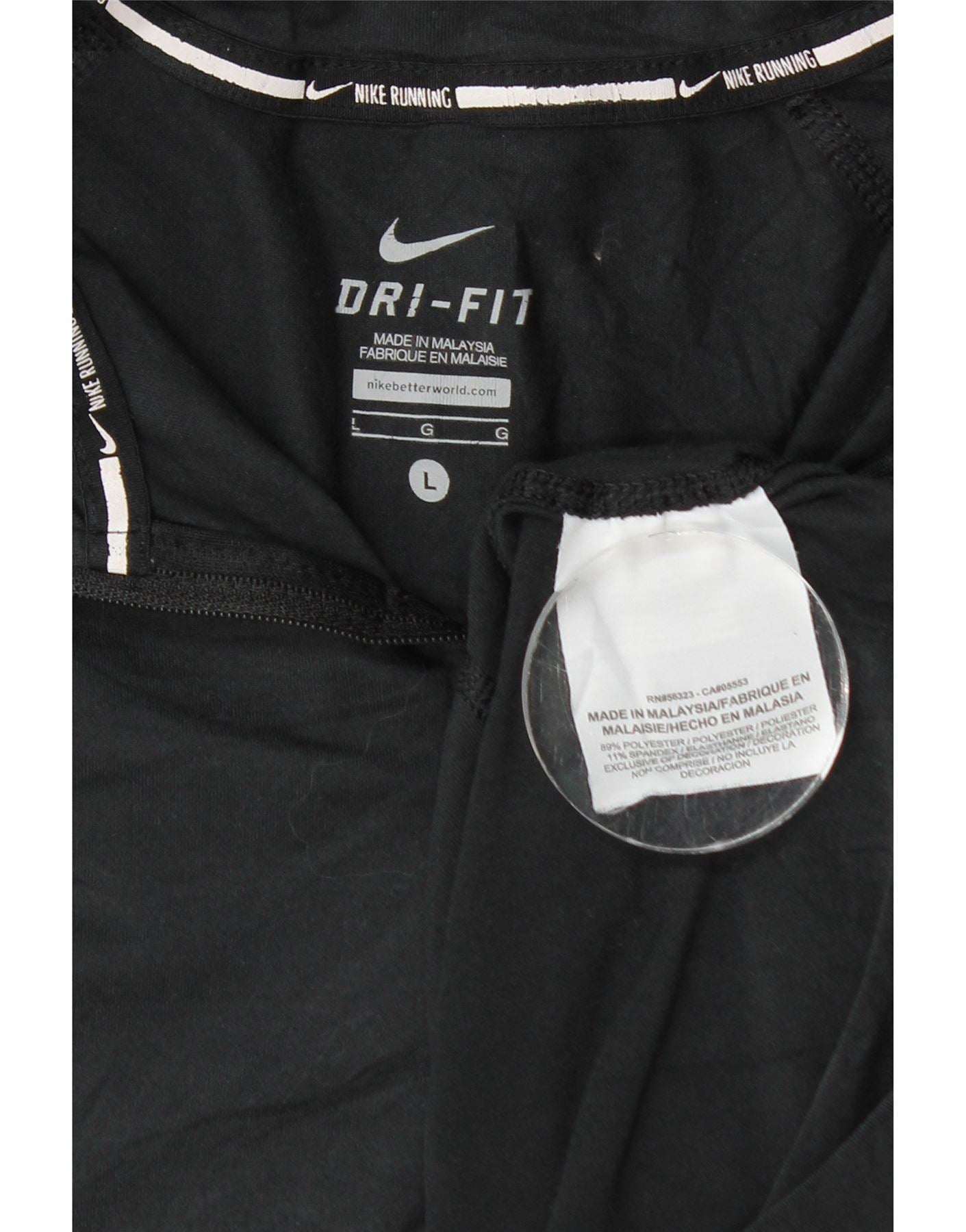 Top feminino Nike Dri Fit com zíper e manga comprida UK 14 grande poliéster preto