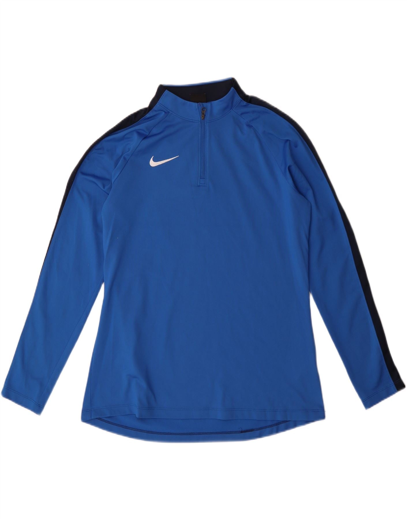 NIKE Womens Dri Fit Zip Neck Top Manga Longa Reino Unido 14 Médio Azul Poliéster