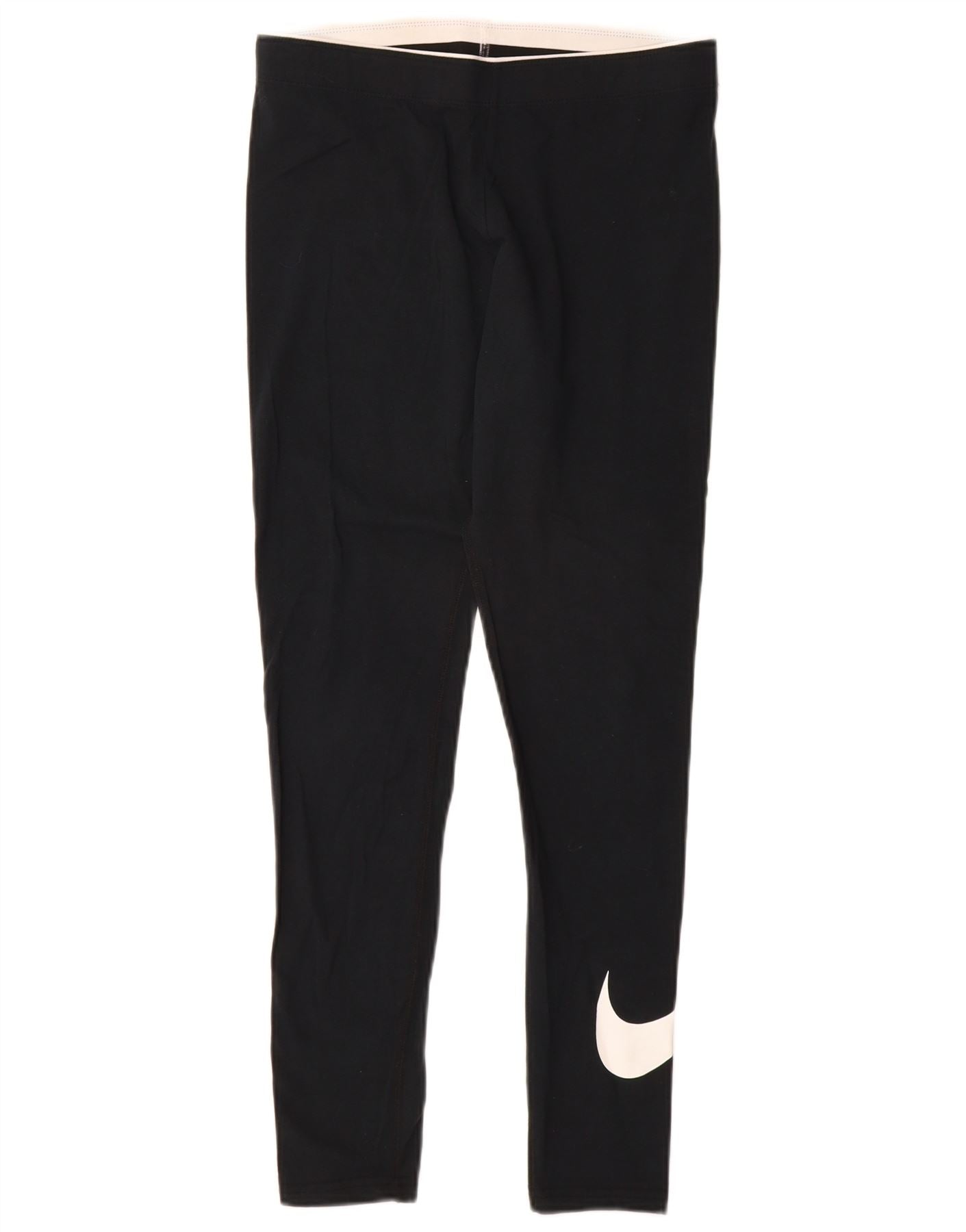 - Descrição da IA: Estas leggings femininas da Nike são feitas de uma confortável mistura de algodão preto. O tecido oferece excelente elasticidade e textura macia. Eles apresentam um design pull-on com cintura elástica para um ajuste seguro e confortável. A silhueta slim fit afunila perfeitamente na perna. Um logotipo branco proeminente da Nike está posicionado na parte inferior da perna, adicionando um toque esportivo exclusivo.