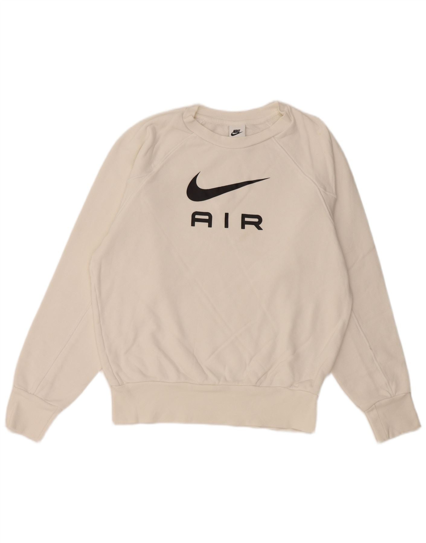 NIKE Womens Graphic Oversized Sweatshirt Jumper UK 10 Small White Cotton