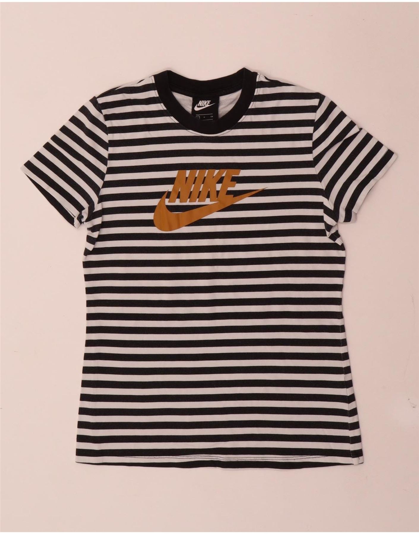 Camiseta feminina Nike Graphic UK 10 pequena listrada preta de algodão