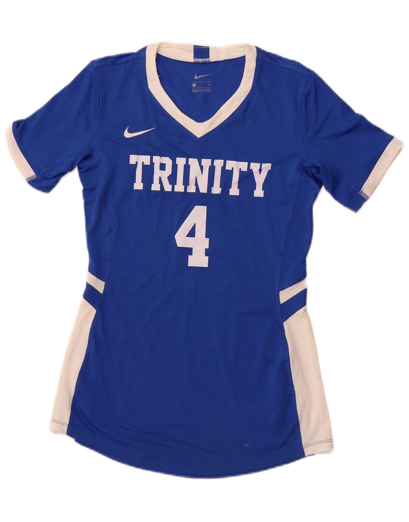 Camiseta feminina NIKE com estampa gráfica UK 10 pequena azul colorblock poliéster