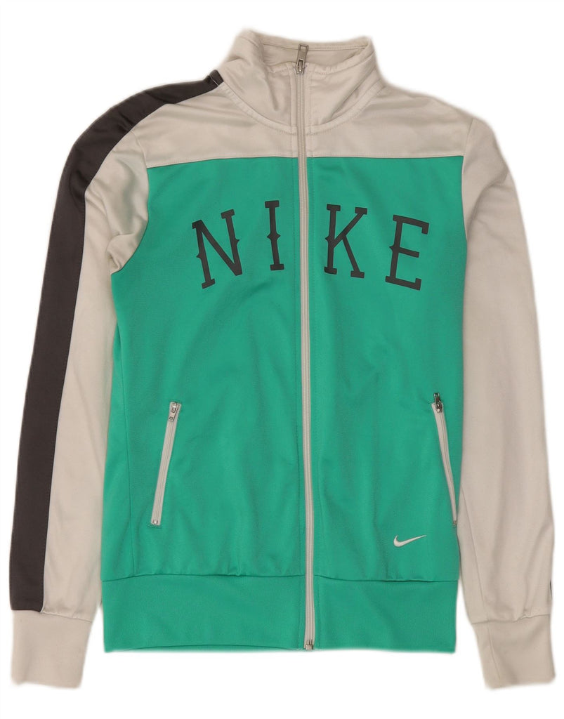 NIKE Womens Graphic Tracksuit Top Jacket UK 12 Medium Green Colourblock