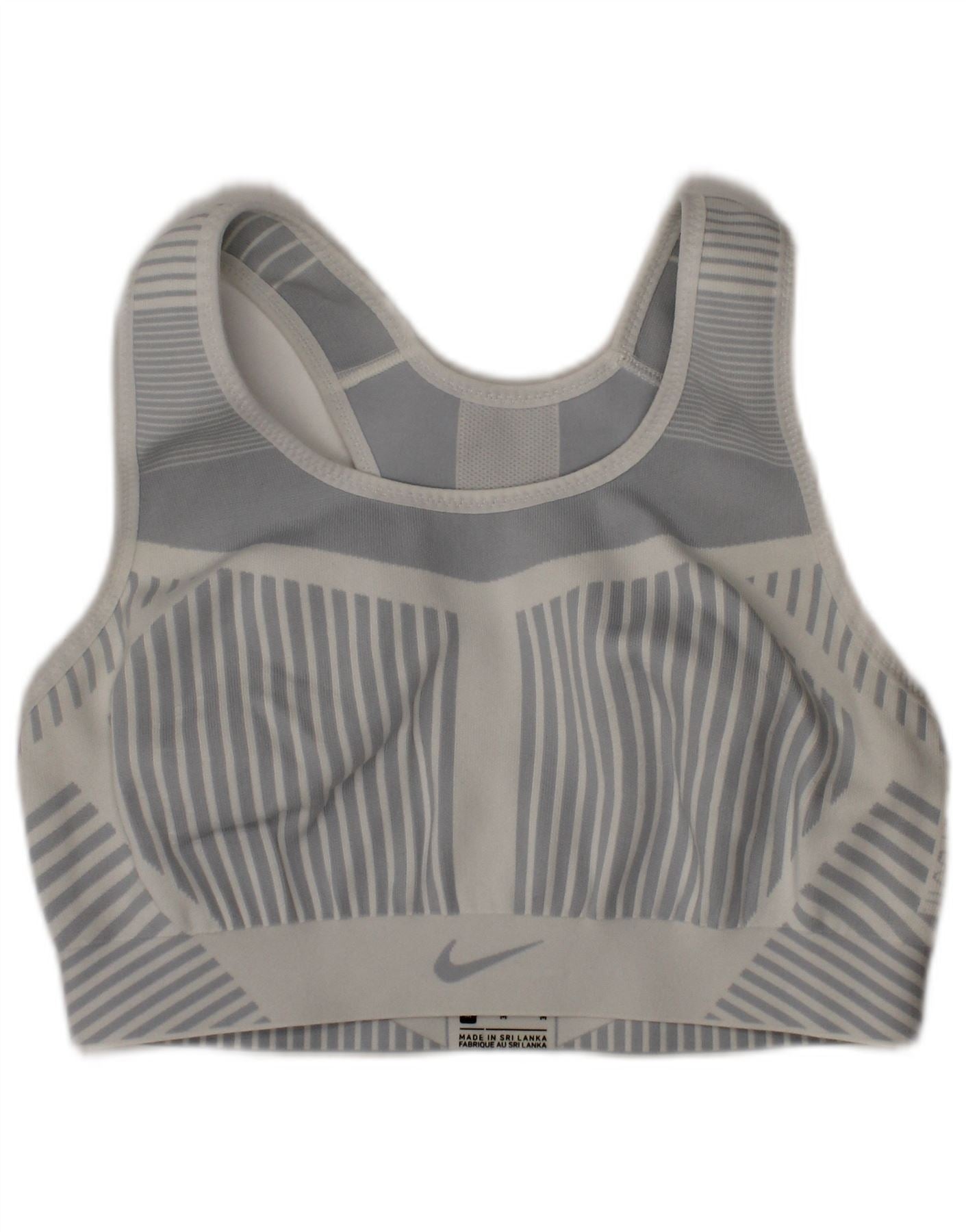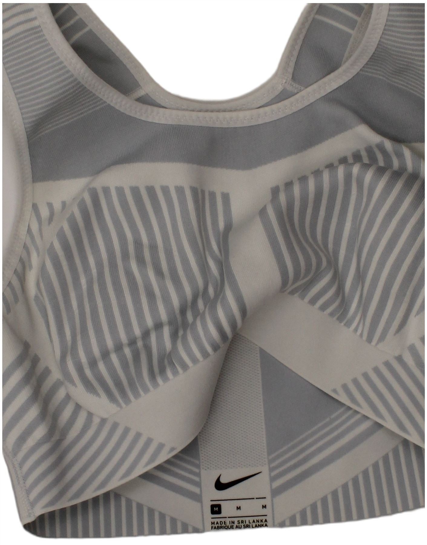 NIKE Womens Running Sport Bra Colete Top UK 12 Medium Grey Striped Sports