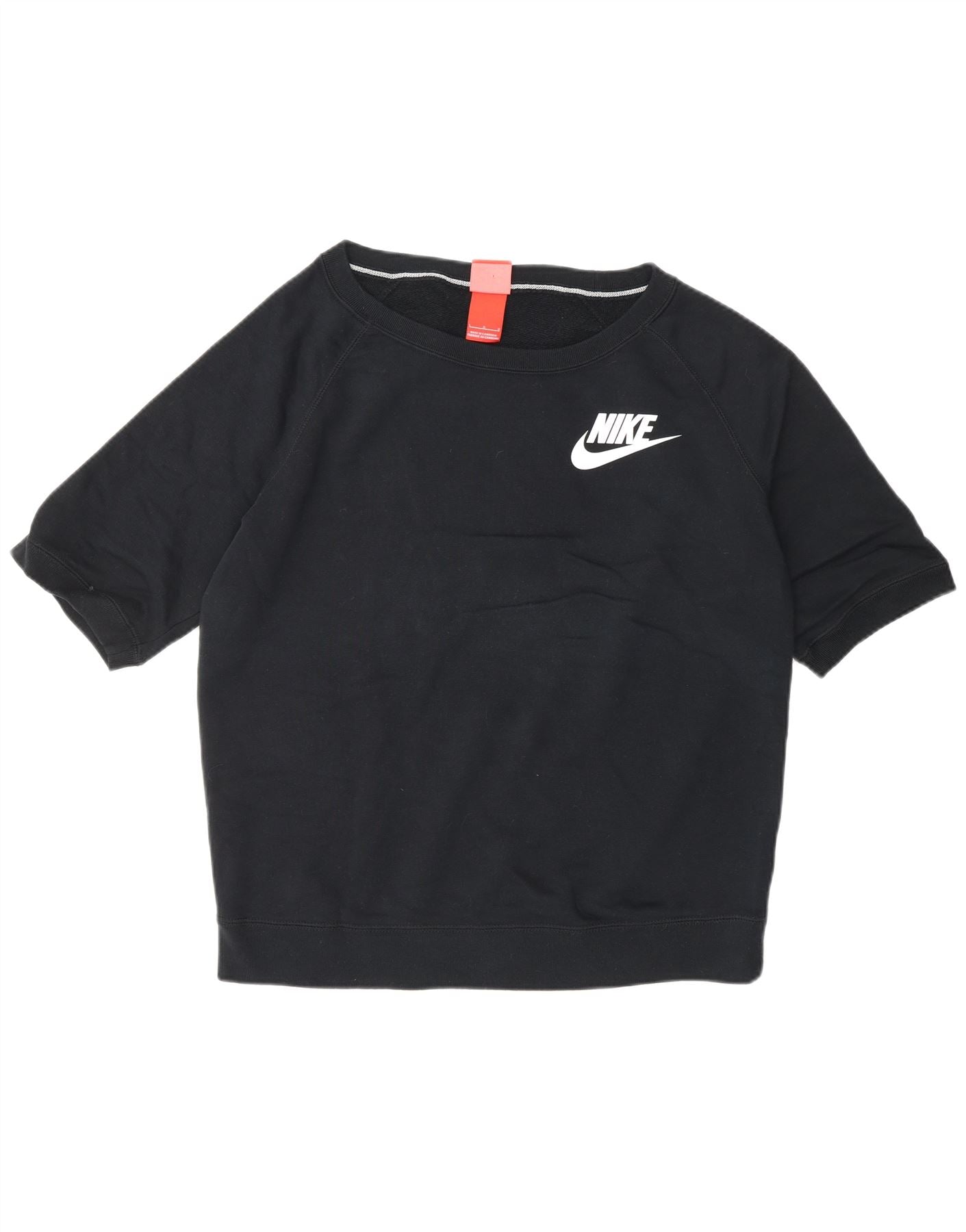 NIKE feminino manga curta moletom jumper UK 16 grande algodão preto