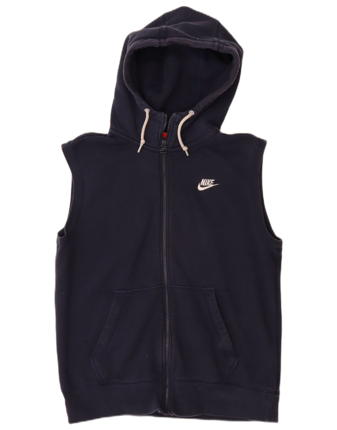 Suéter feminino Nike sem mangas com capuz e zíper Reino Unido 16 grande algodão azul marinho