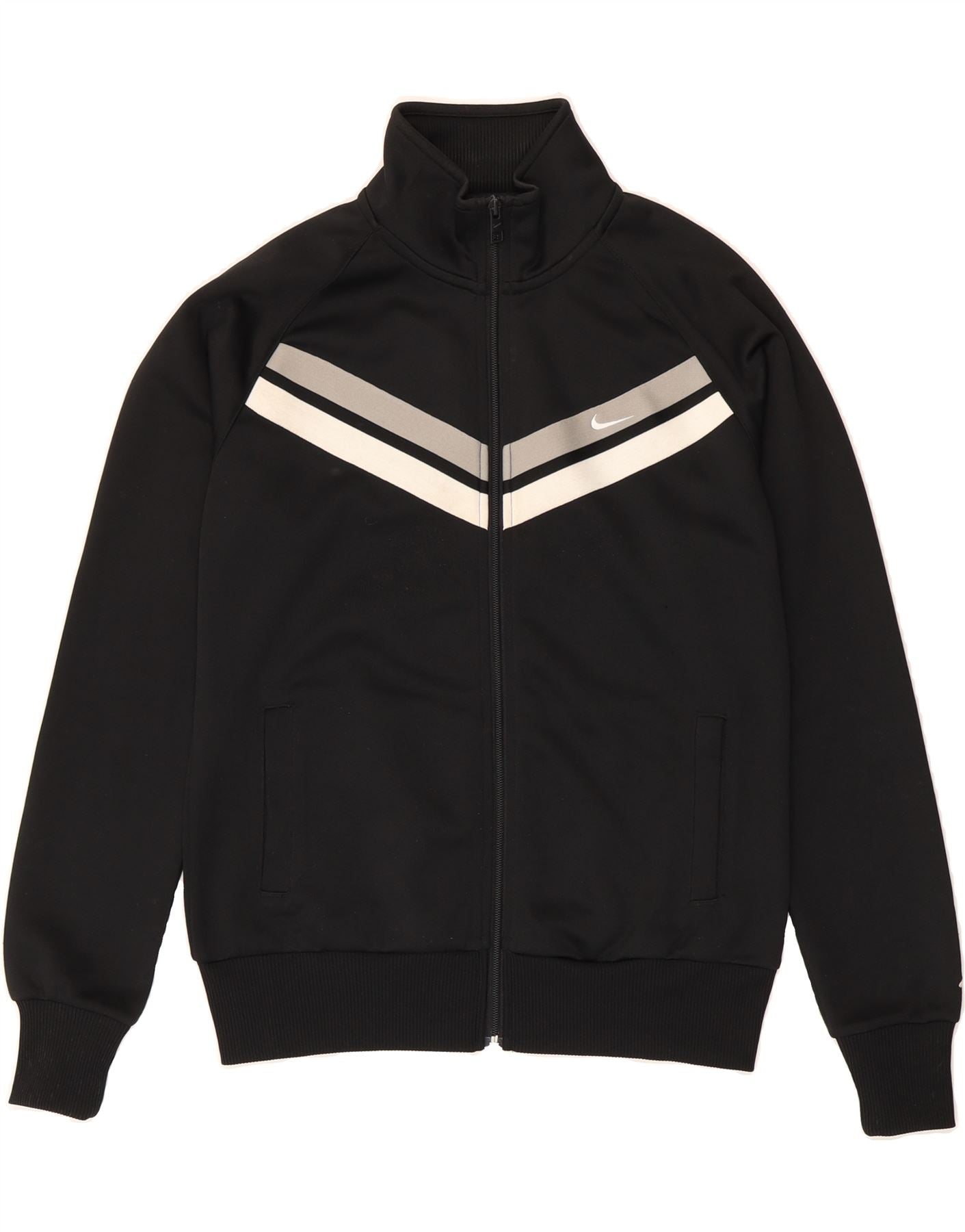 - Descrição da IA: Esta jaqueta Nike usada é uma adição elegante e prática a qualquer guarda-roupa. Confeccionada em tecido de malha 100% poliéster, esta jaqueta esportiva preta de manga comprida apresenta corte regular com fecho de correr completo e decote com gola. Acentuado com o icônico logotipo da Nike, apresenta um padrão listrado e bolsos práticos. A jaqueta está em excelentes condições e rotulada como tamanho G. Perfeita para uso ativo ou passeios casuais.