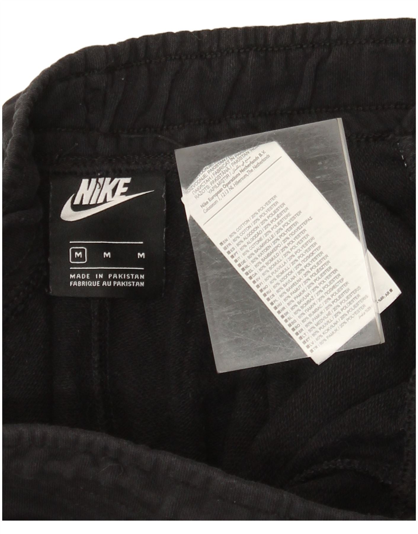 - Descrição da IA: Estas calças de treino femininas da Nike são confeccionadas em tecido de lã macio com mistura de algodão preto. Eles apresentam um ajuste regular confortável com cintura elástica com cordão. O design inclui bolsos práticos e tornozelos com punhos para um acabamento elegante. Um logotipo sutil da Nike fornece uma marca exclusiva. Perfeito para uso esportivo ou casual, oferecendo conforto e estilo.