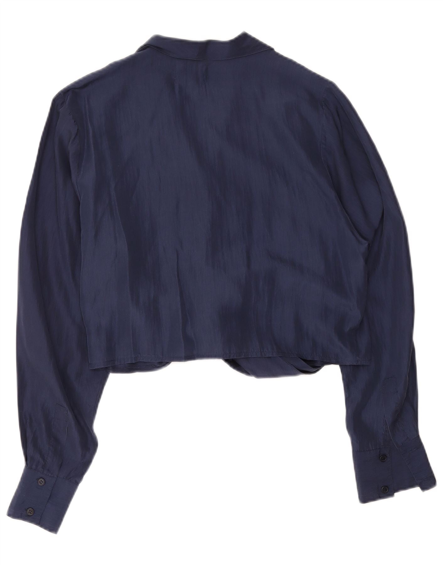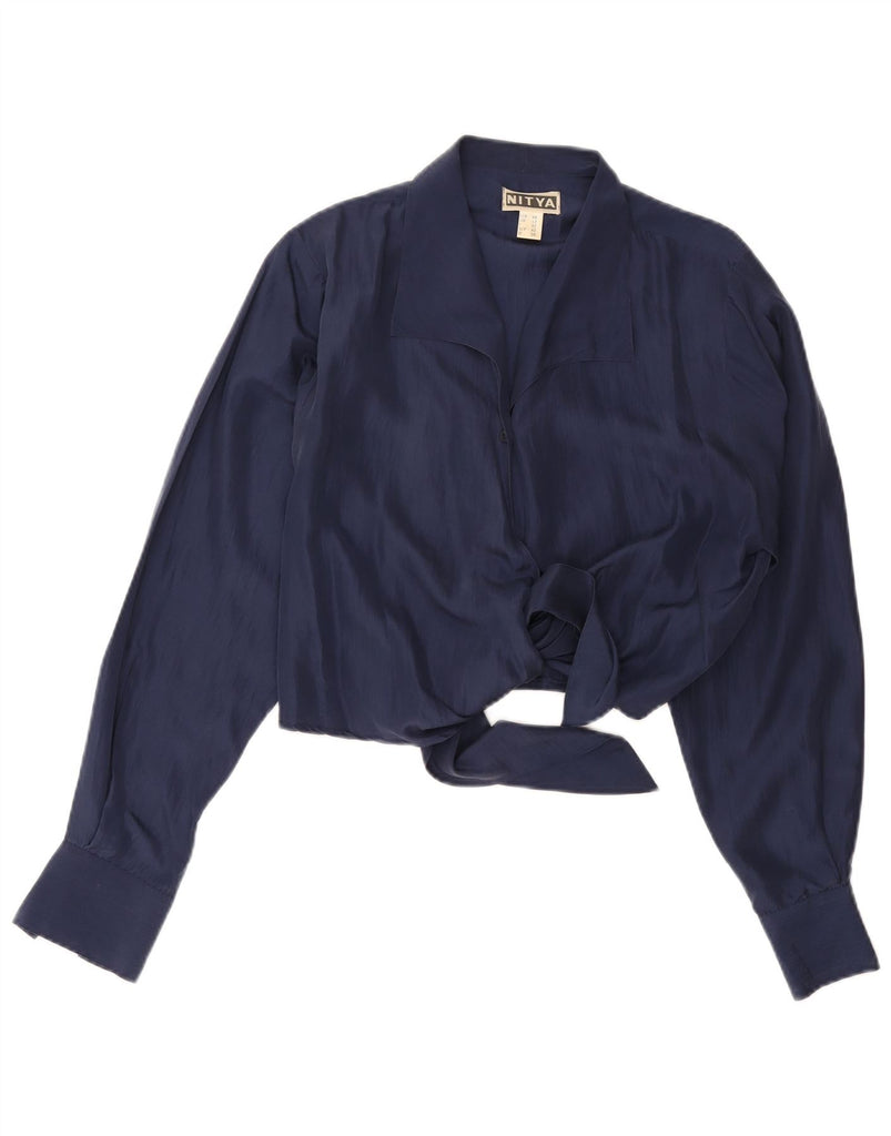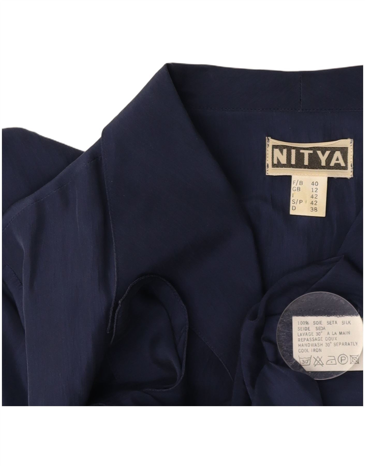 Blusa feminina NITYA com corte envoltório Reino Unido 12 seda azul marinho médio