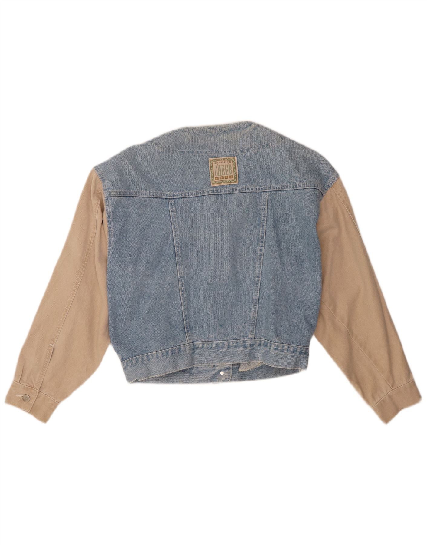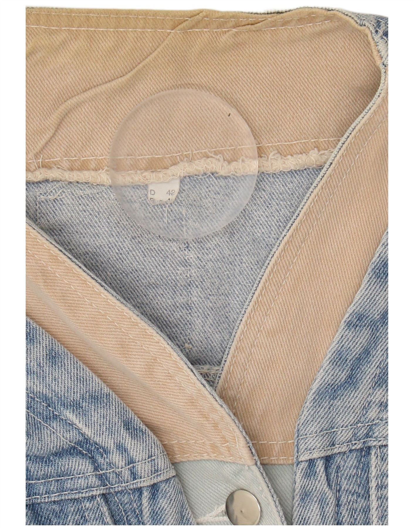 NO PROBLEM Womens Denim Jacket EU 42 Large Blue Colourblock Cotton