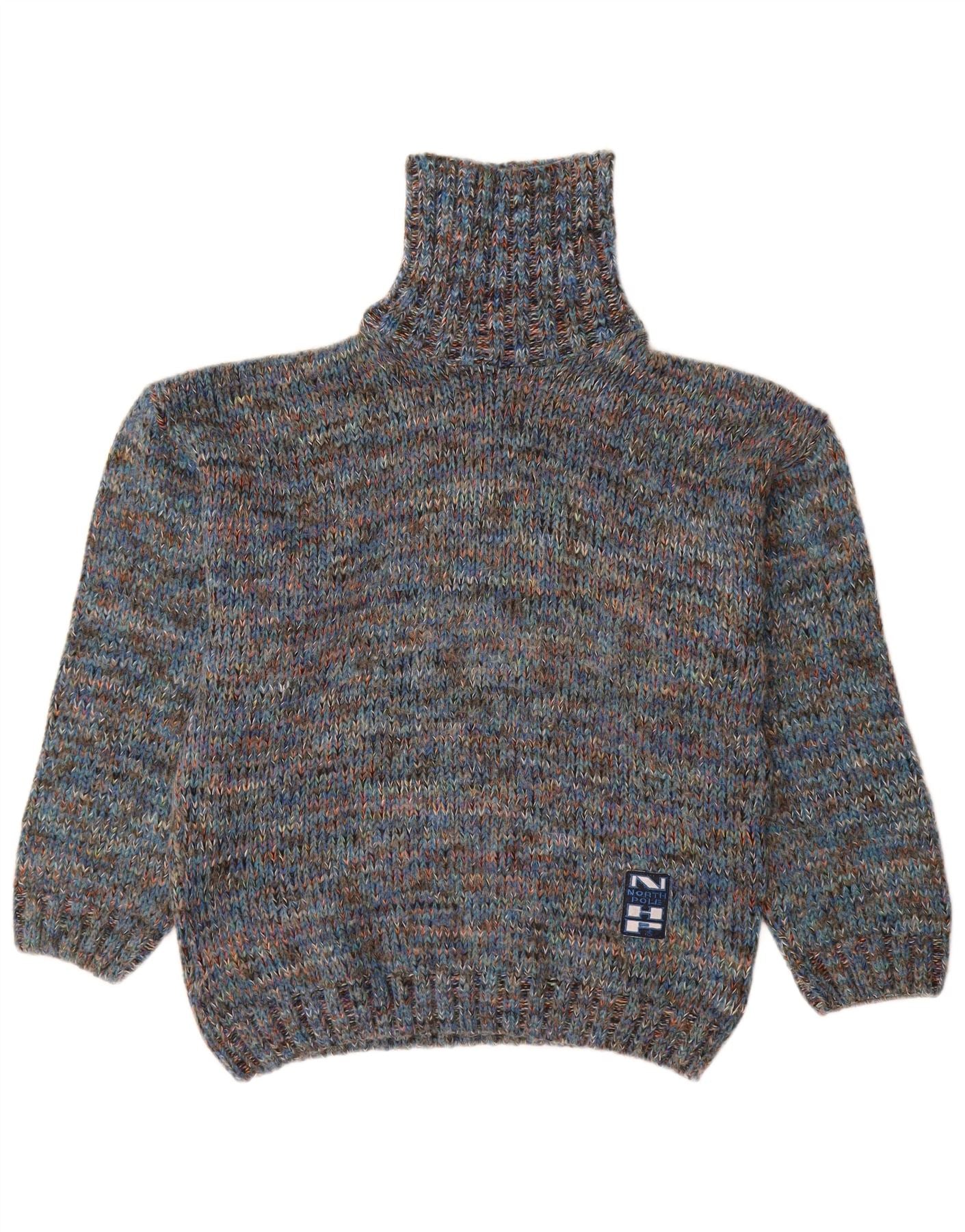 Suéter masculino com gola redonda NORTH POLE lã manchada azul médio