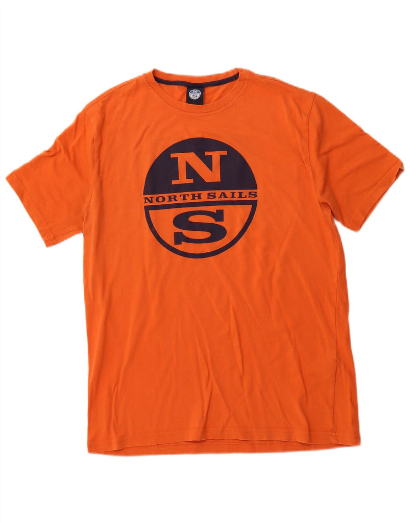 NORTH SAILS Mens Graphic T-Shirt Top Medium Orange Colourblock Cotton