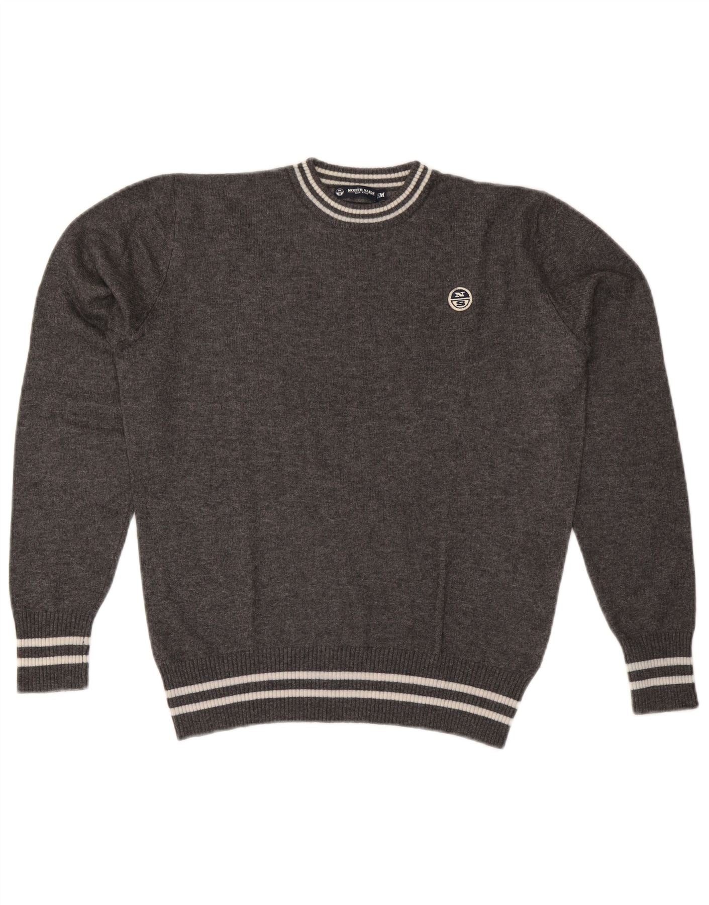 Suéter feminino NORTH SAILS com gola redonda Reino Unido 14 lã cinza médio