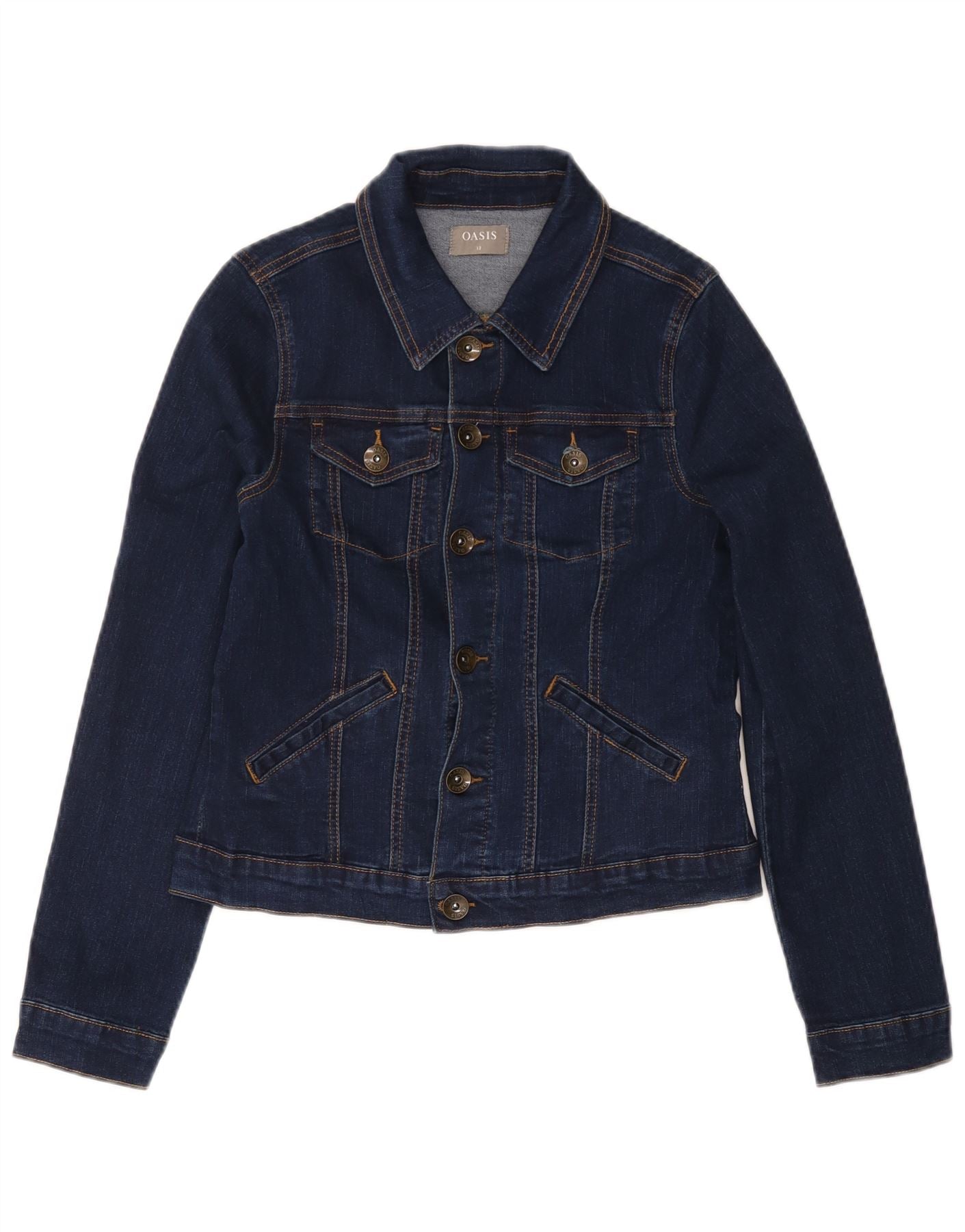 Jaqueta jeans feminina OASIS UK 12 algodão azul marinho médio