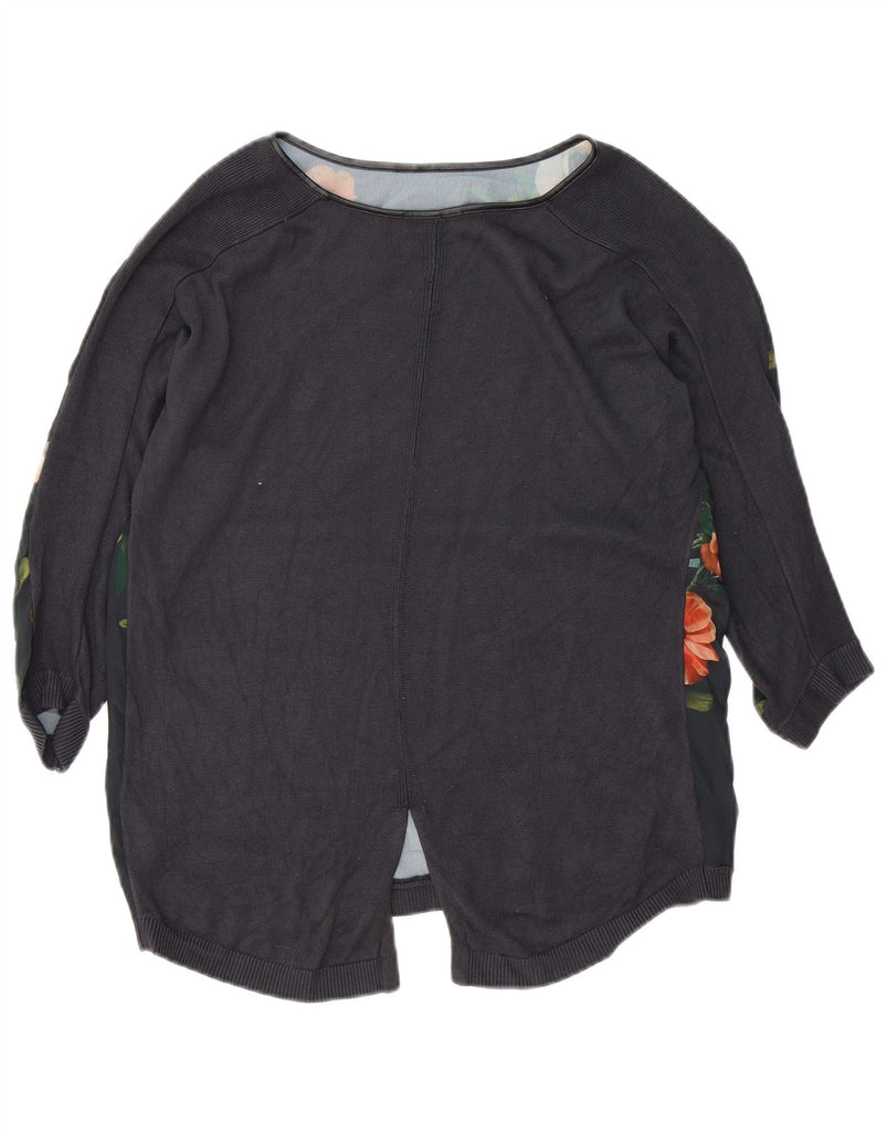 OASIS Womens Oversized Long Sleeve Blouse Top UK 6 XS Navy Blue Floral