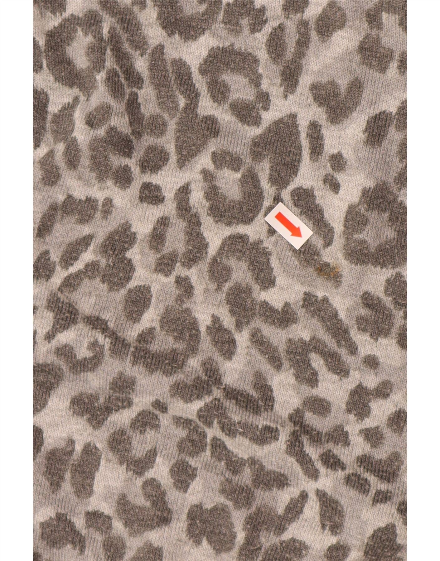 Suéter feminino OASIS com gola redonda Reino Unido 14 cinza médio com estampa animal