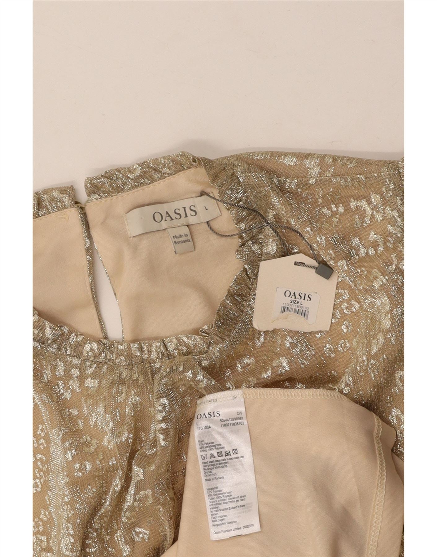 Blusa feminina sem mangas OASIS UK 14 grande bege estampa animal