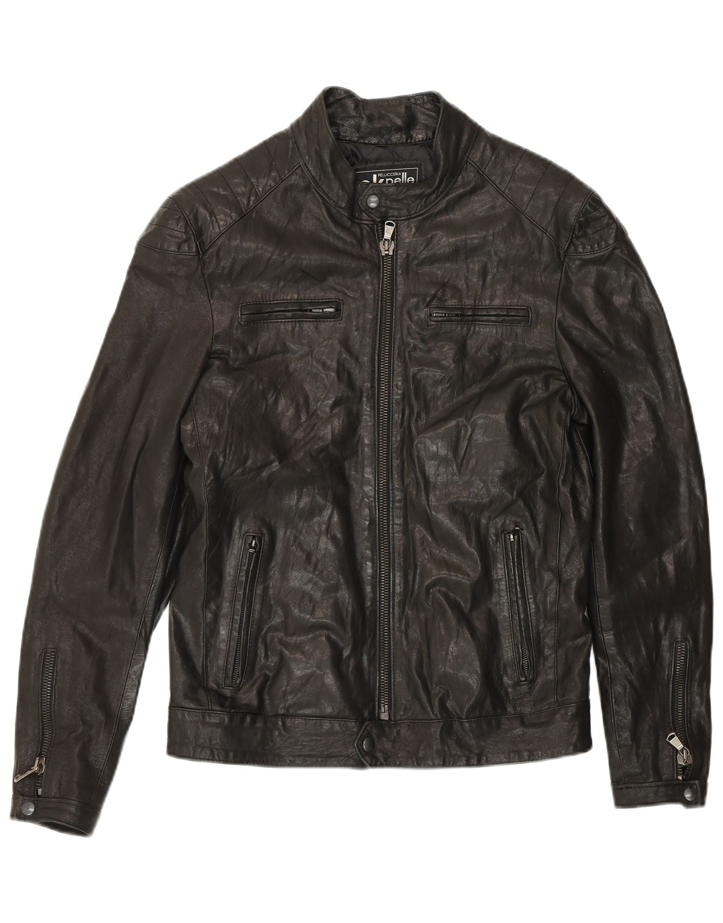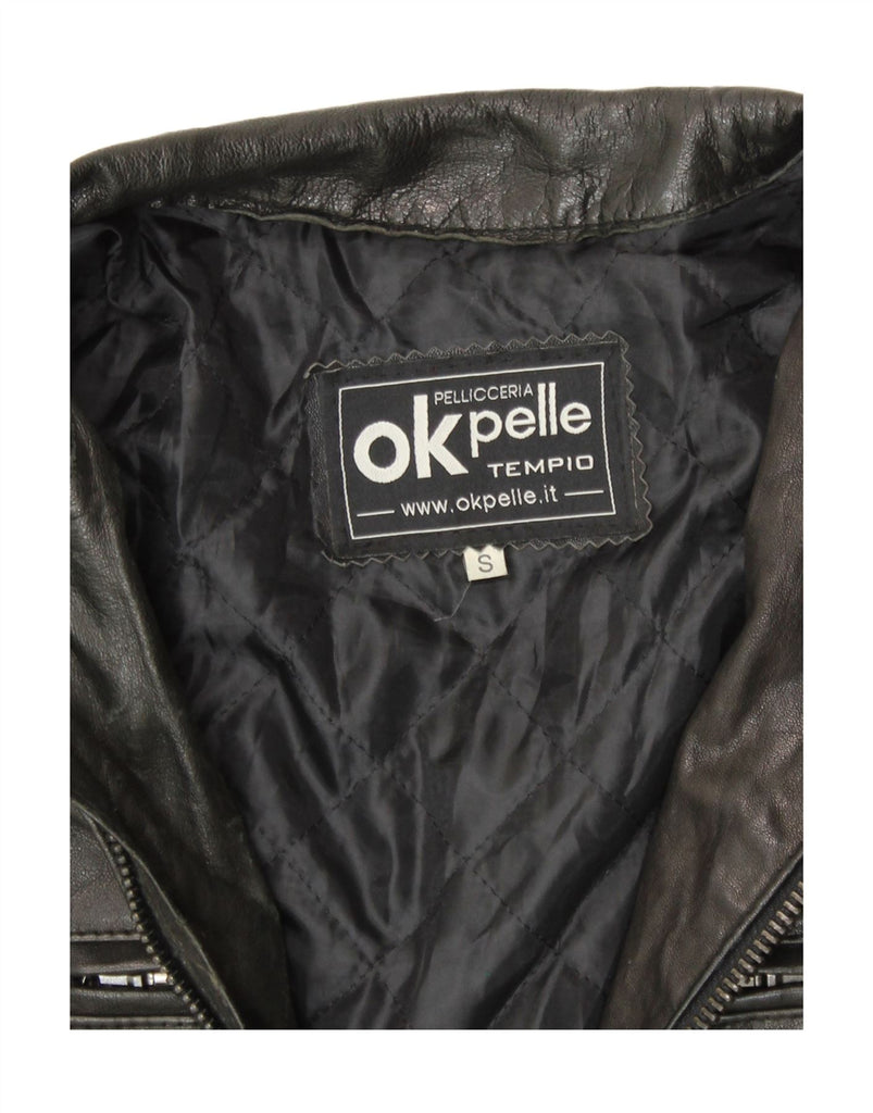 Jaqueta de couro bomber masculina OK PELLE Reino Unido 36 couro preto pequeno