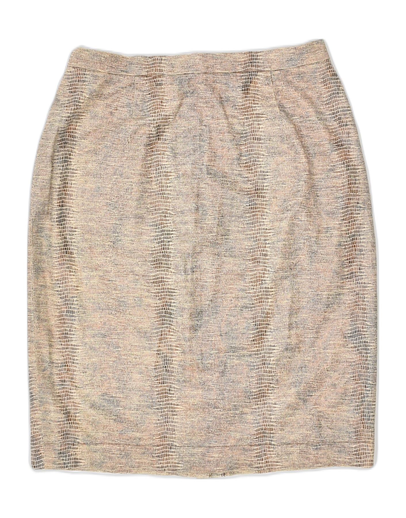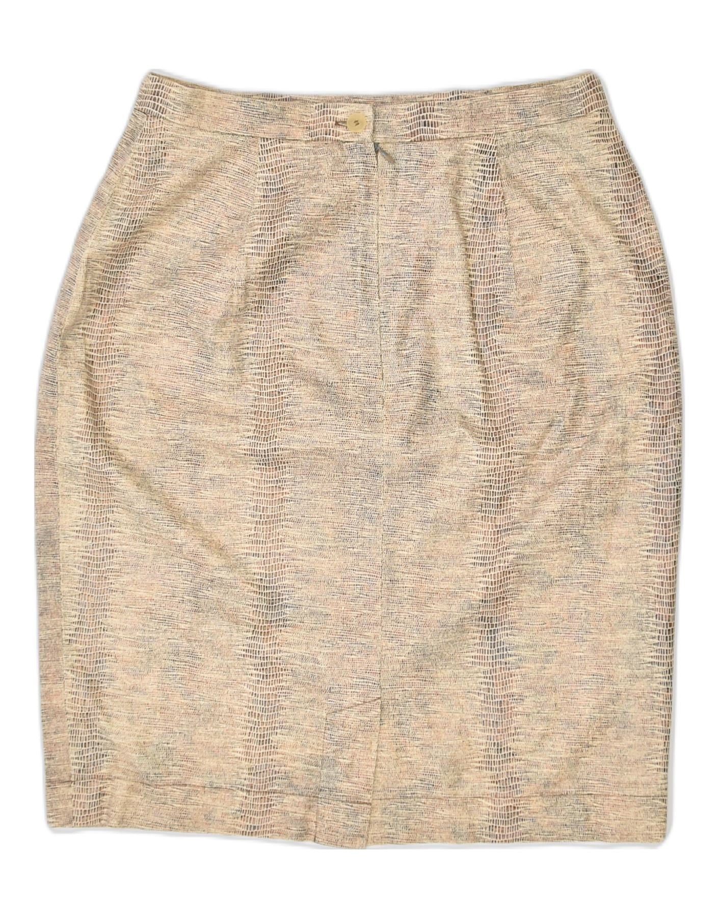 OLSEN Saia reta feminina UK 10 pequena W26 bege estampa animal algodão