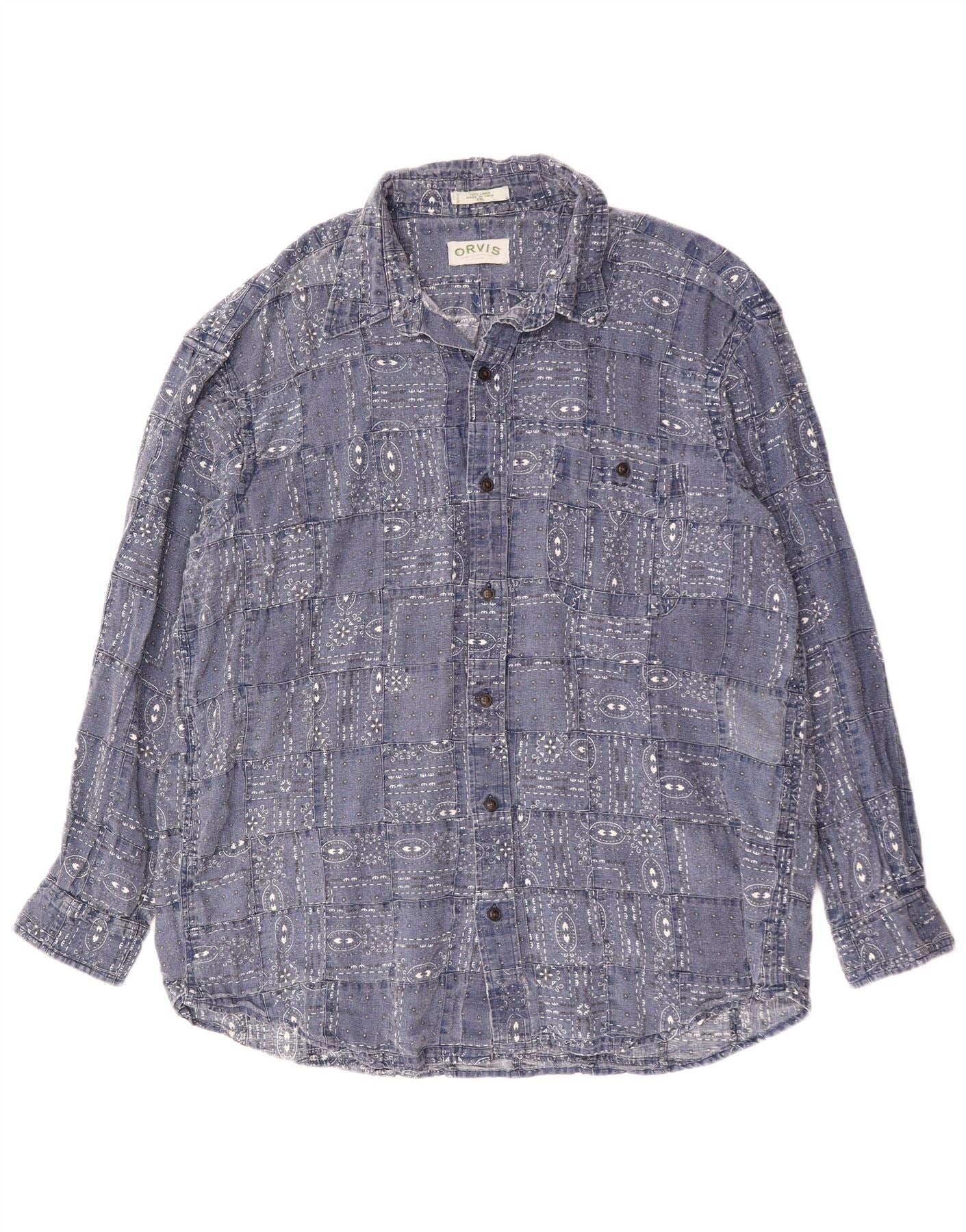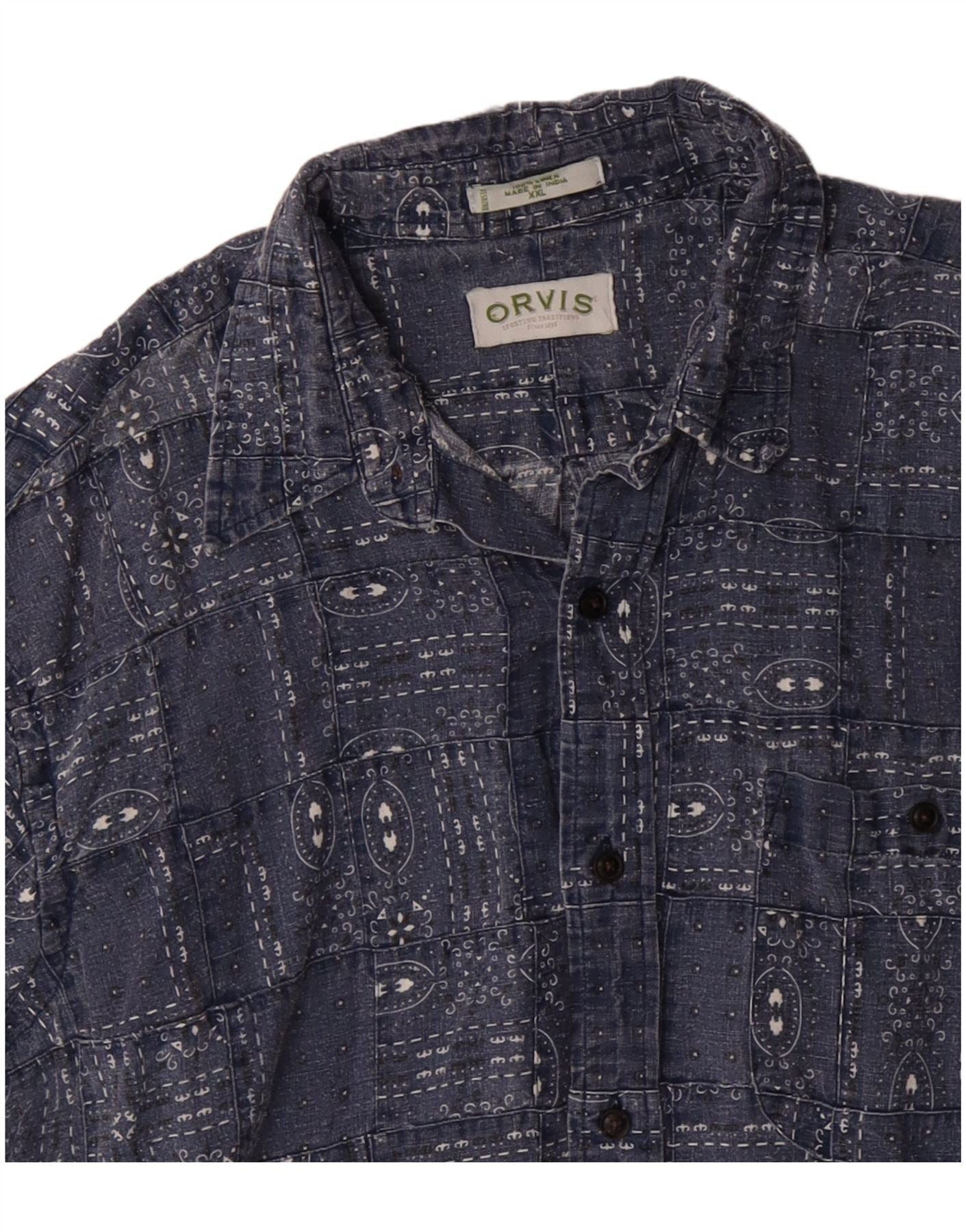 Camisa masculina ORVIS 2XL linho geométrico azul marinho