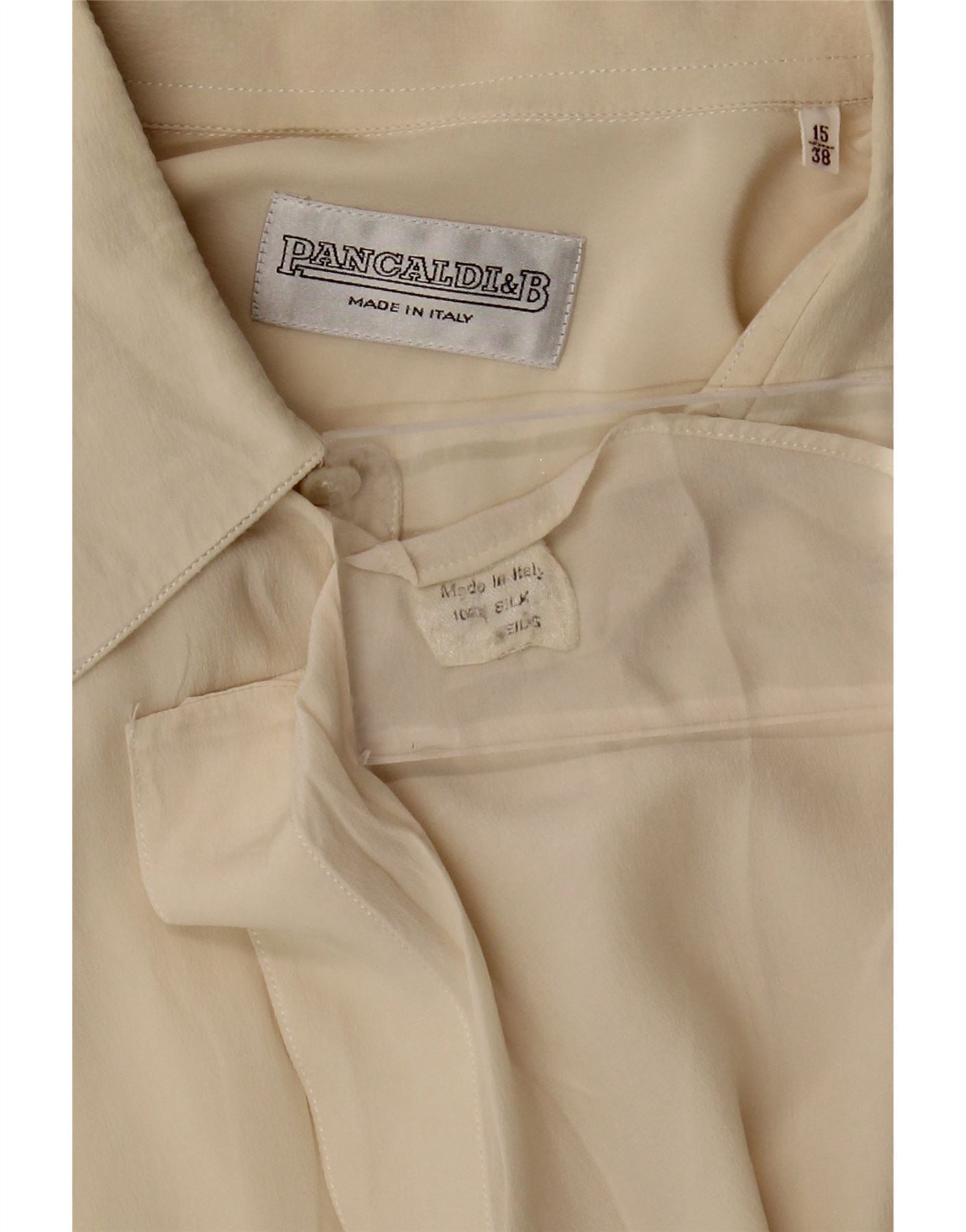 PANCALDI & B Mens Shirt Size 15 38 Medium Off White Silk