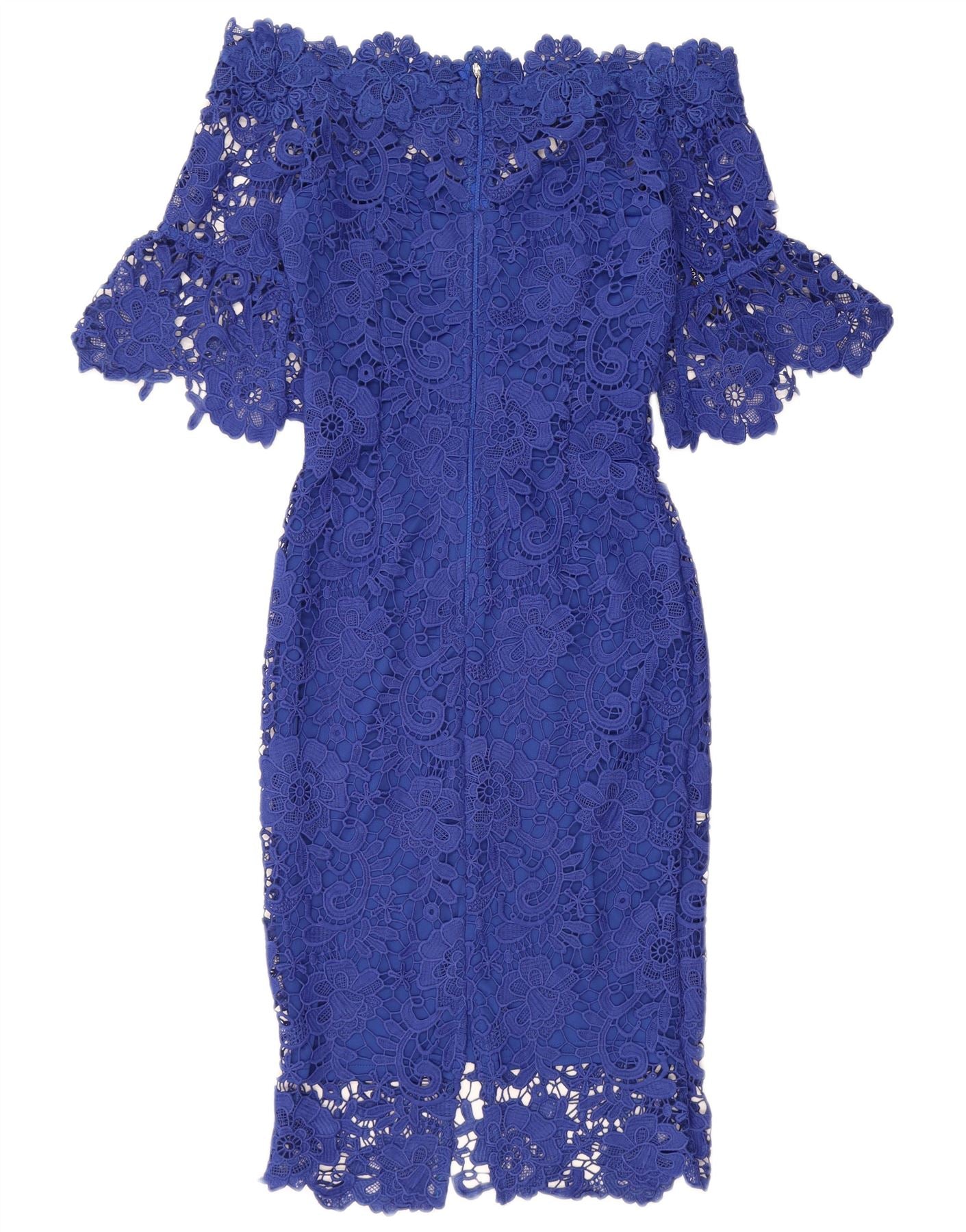 PAPER DOLLS Vestido feminino ombro de fora UK 8 pequeno azul floral poliéster