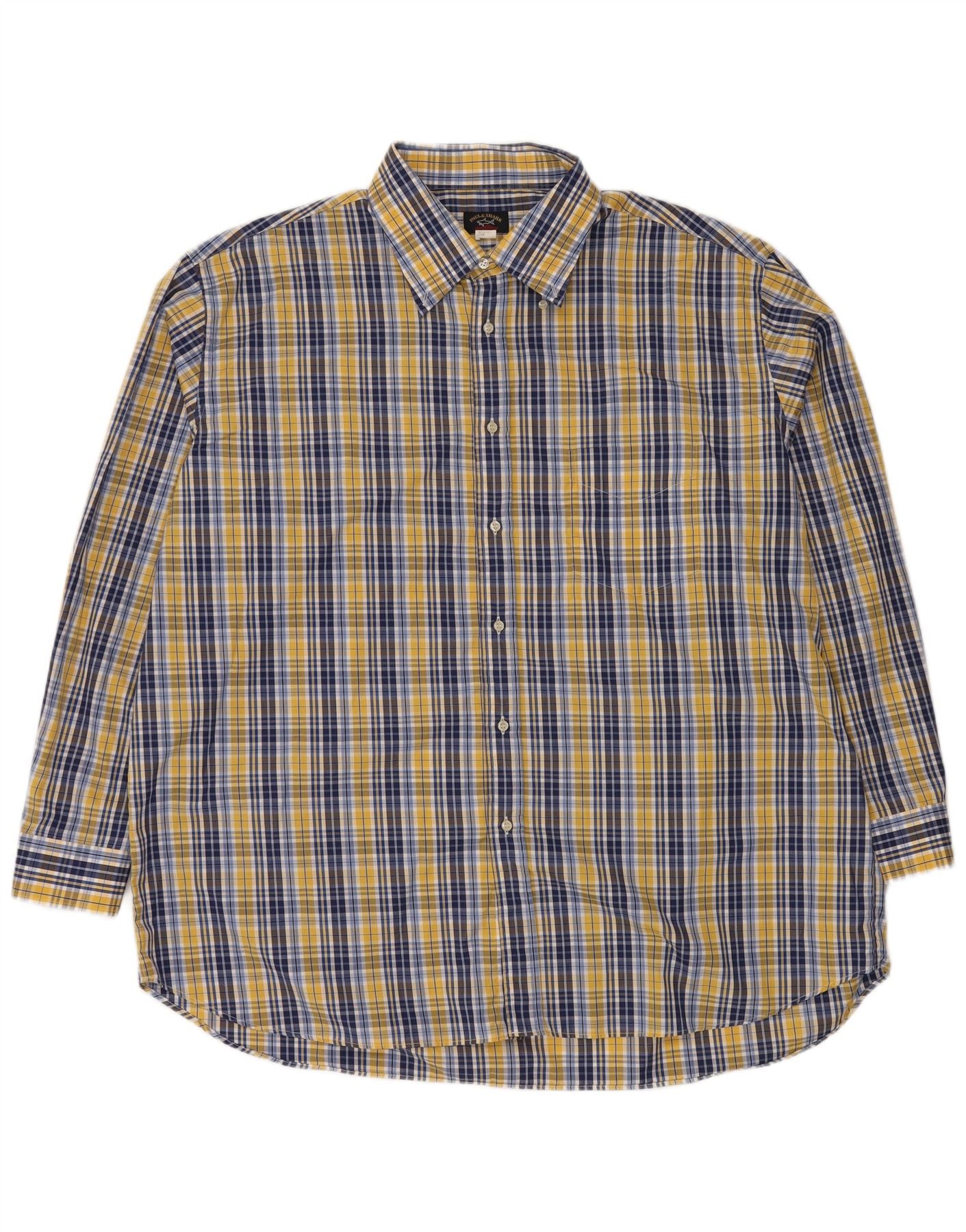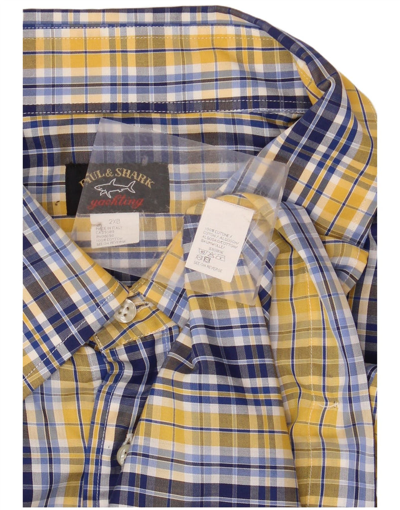 PAUL & SHARK Camisa masculina grande e alta 2XL algodão xadrez amarelo