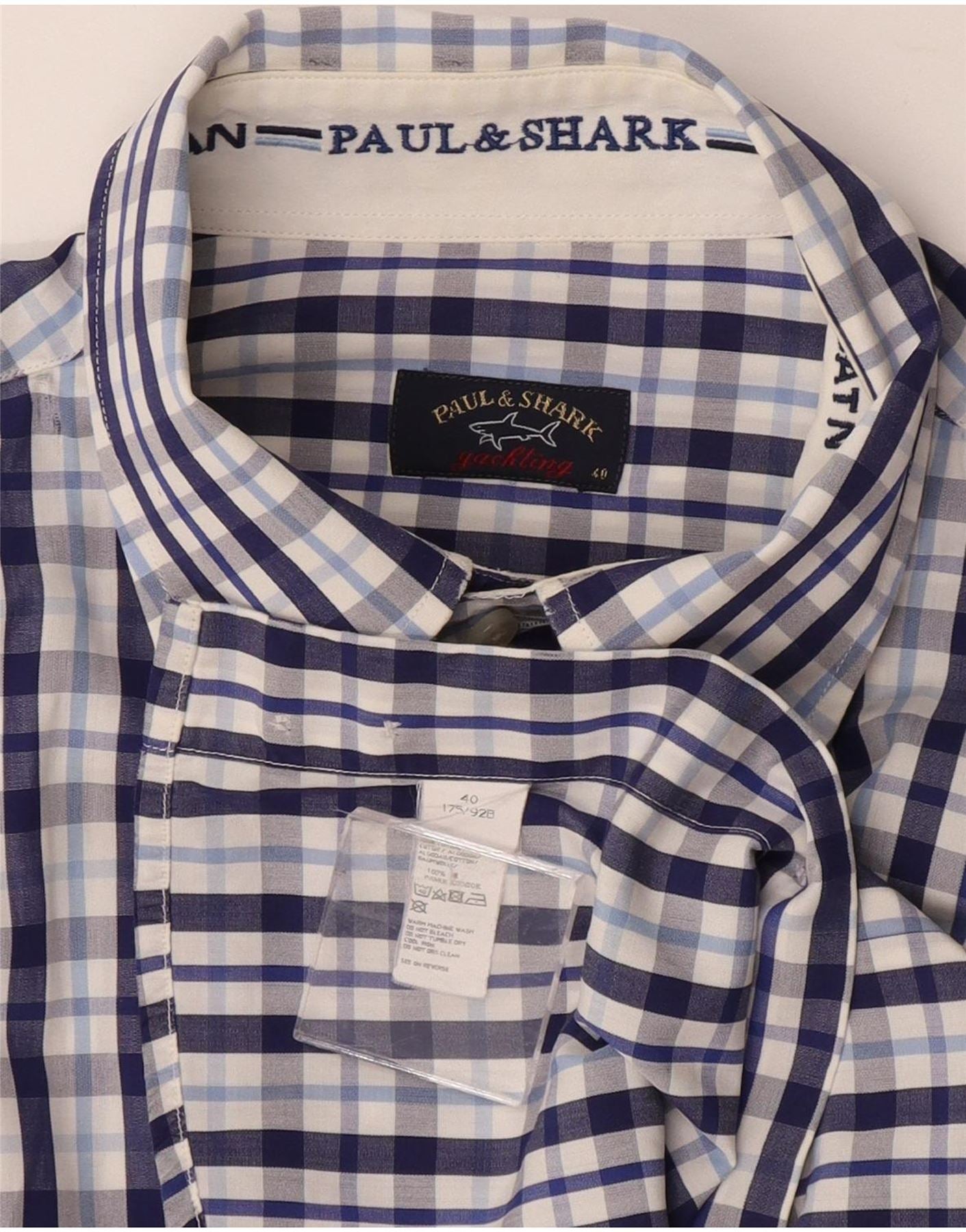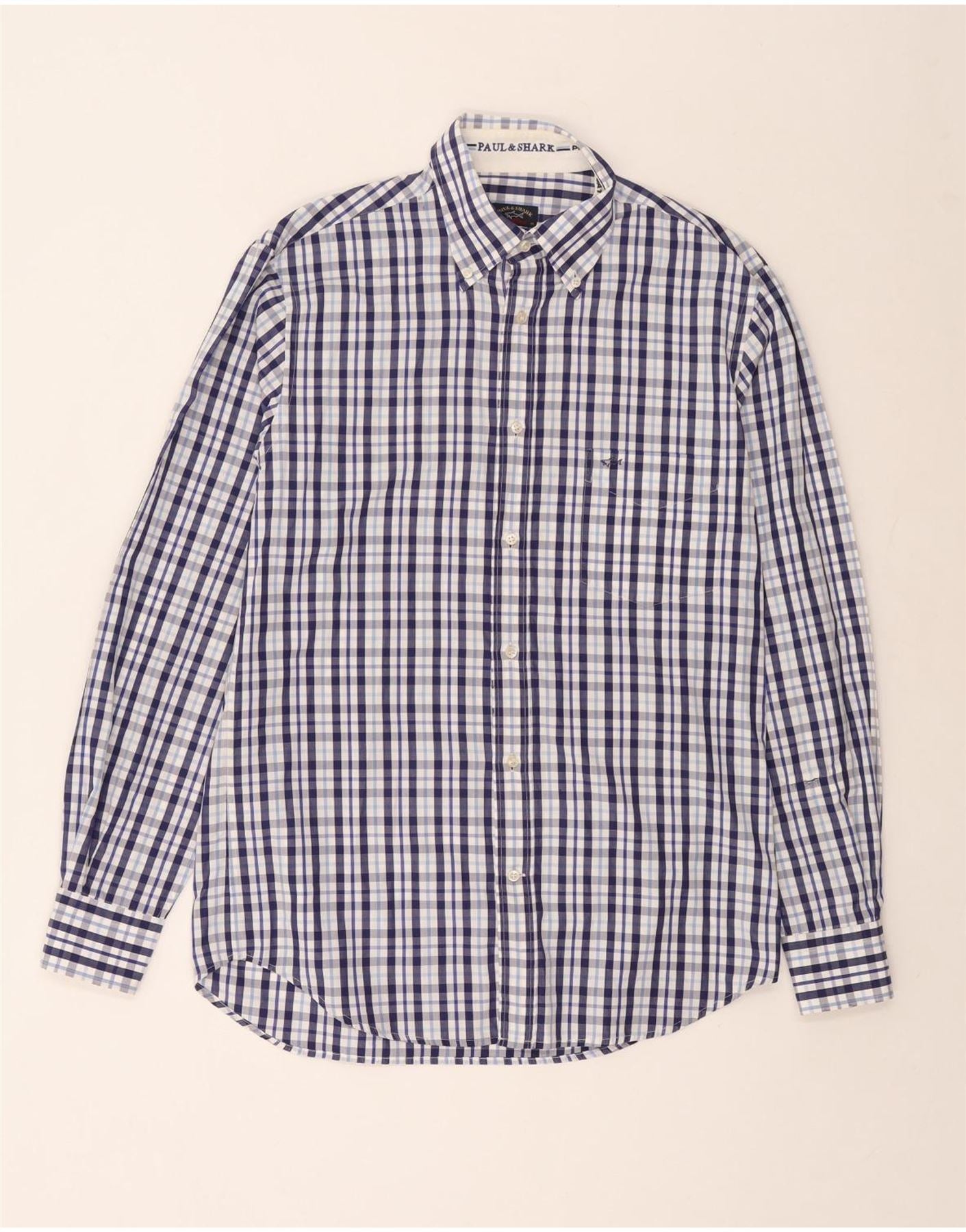 Camisa xadrez masculina Paul & Shark de algodão xadrez azul médio