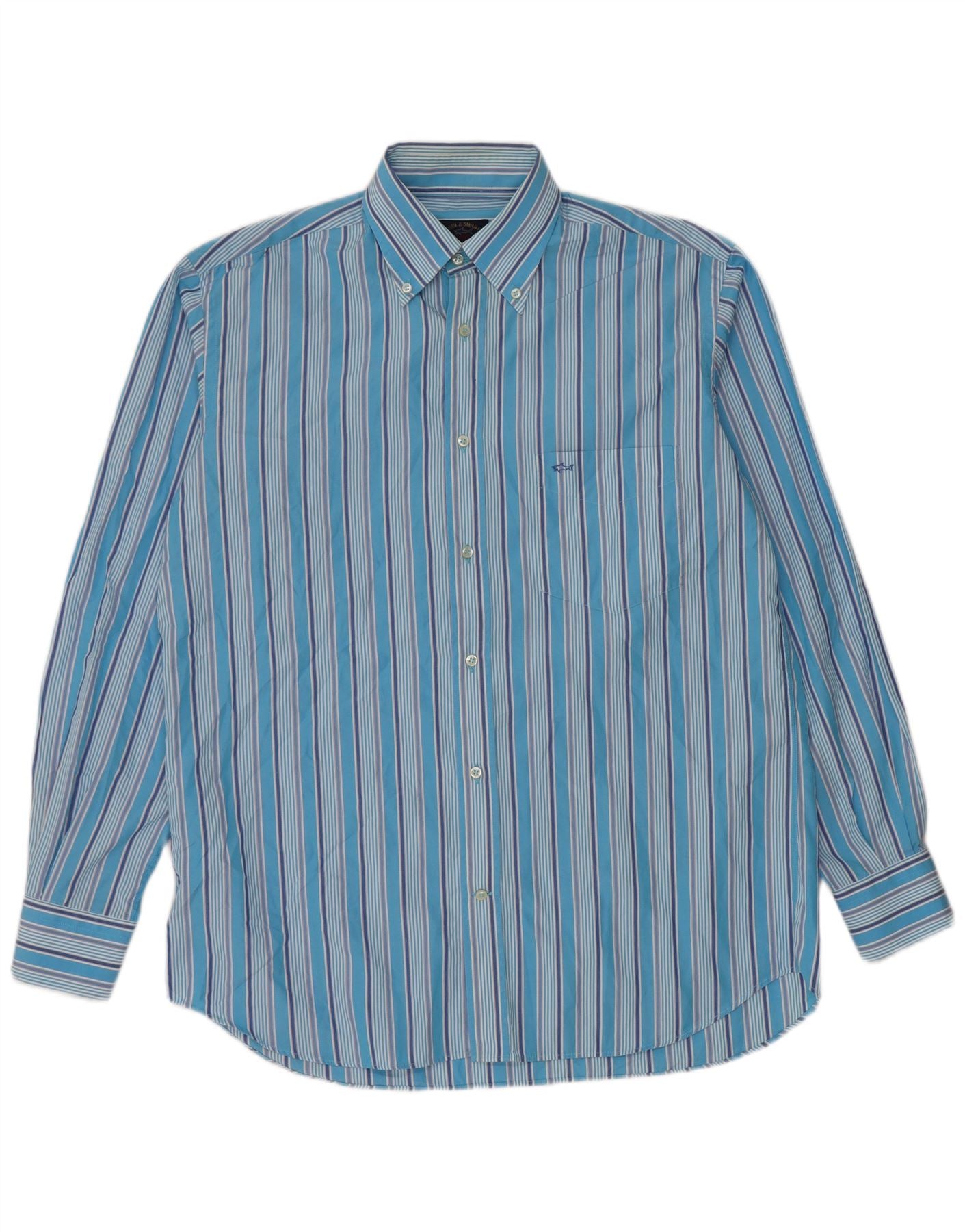 Camisa masculina Paul & Shark tamanho 40 algodão listrado azul médio