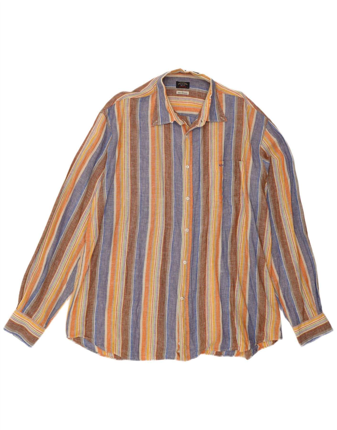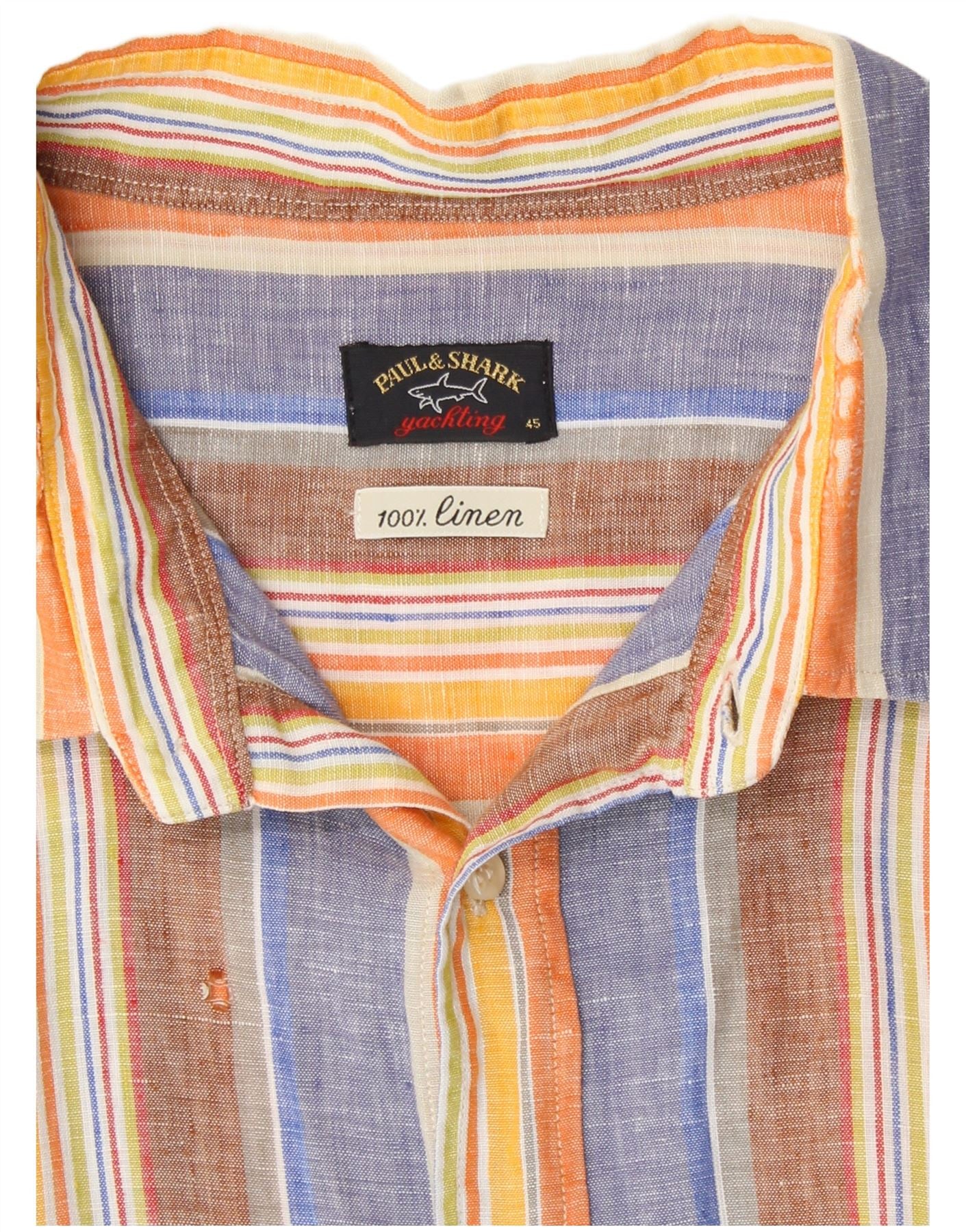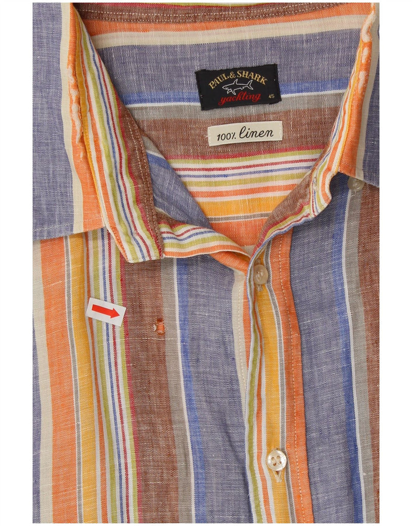 Camisa masculina PAUL & SHARK tamanho 45 XL linho listrado multicolorido