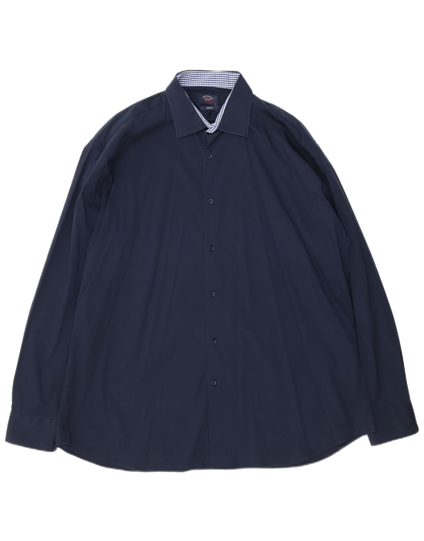 PAUL & SHARK Mens Shirt Size 45 XL Navy Blue Cotton